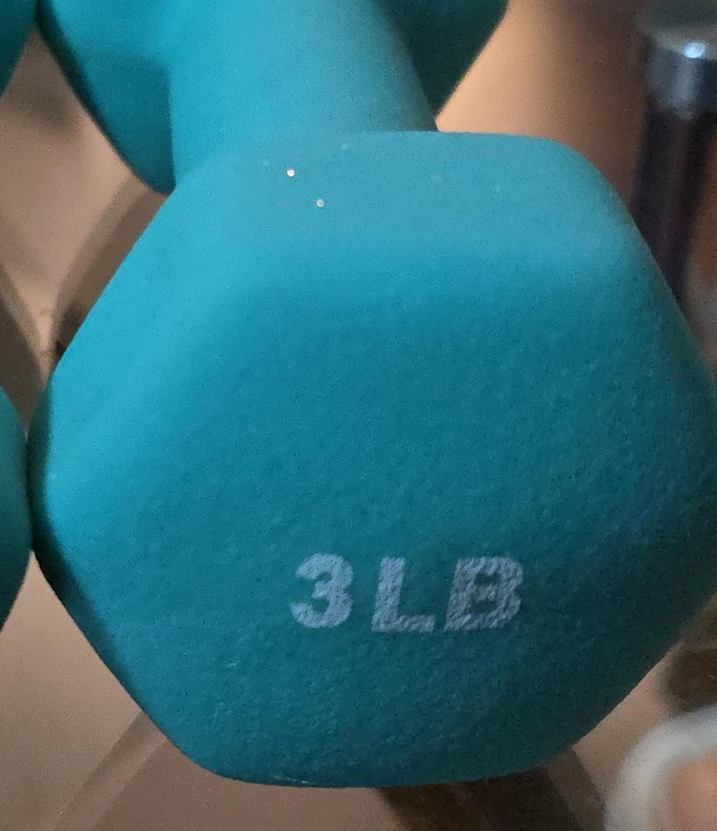 Selling a single 3 LB dumbbell in teal. Great for at-home workouts or adding a little extra weight to your routine! It's in good condition and ready for a new owner