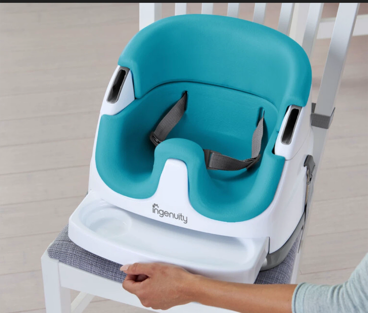 Selling an Ingenuity Baby Base 2-in-1 Seat! It's a great seat for babies and toddlers. It has a removable tray and safety straps to keep your little one secure. The teal colour is super cute! Recommended Age Range is from when baby can sit up unassisted.
