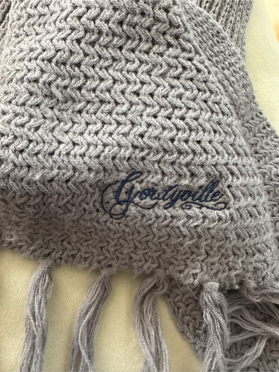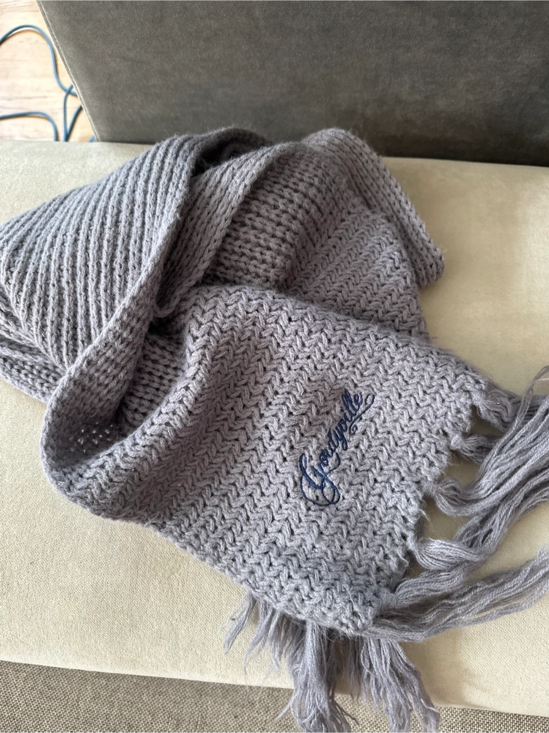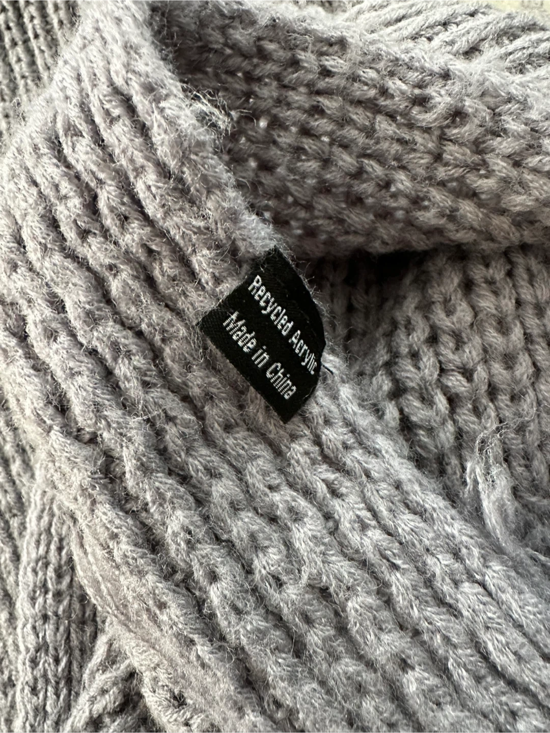 Giving away a cozy gray scarf made of recycled acrylic. It's a stylish and eco-friendly accessory to keep you warm!