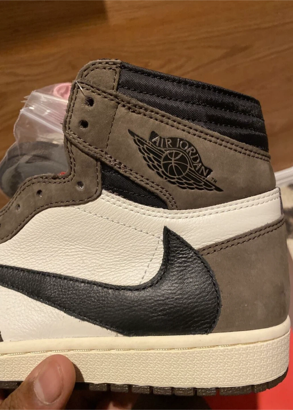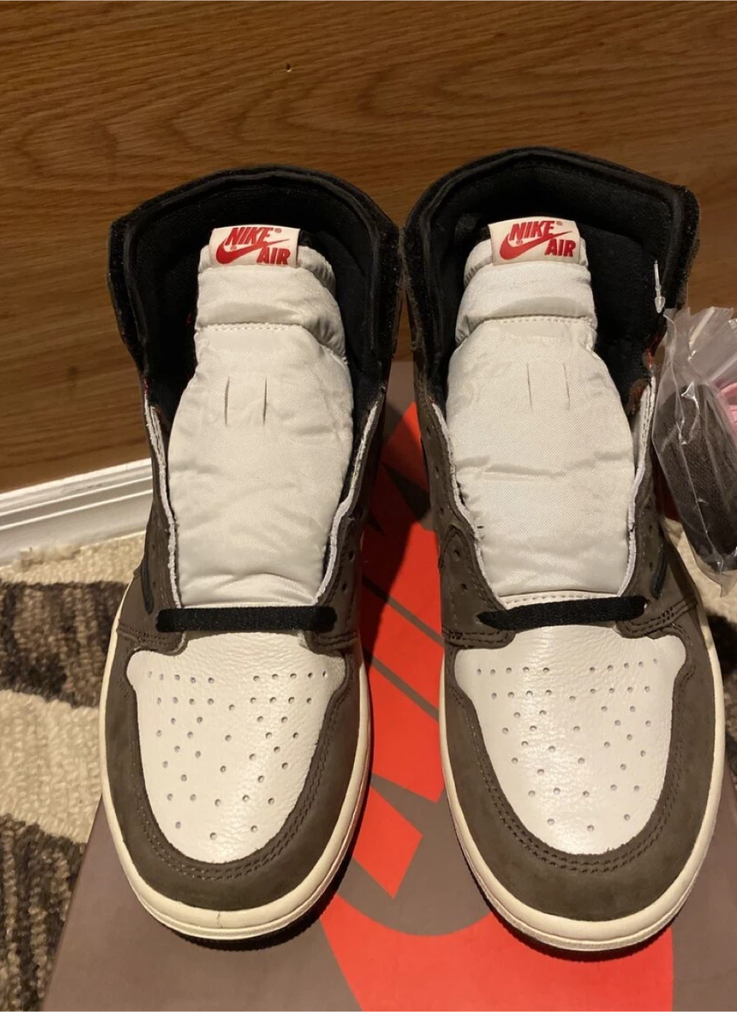 Selling a pair of Nike Air Jordan 1 Travis Scott sneakers. These shoes feature the iconic Air Jordan logo and Travis Scott's signature design elements. They are in good condition and ready for a new owner!