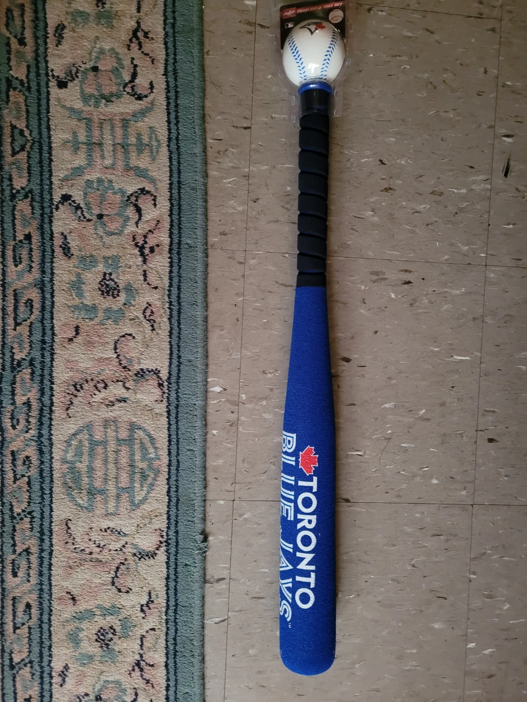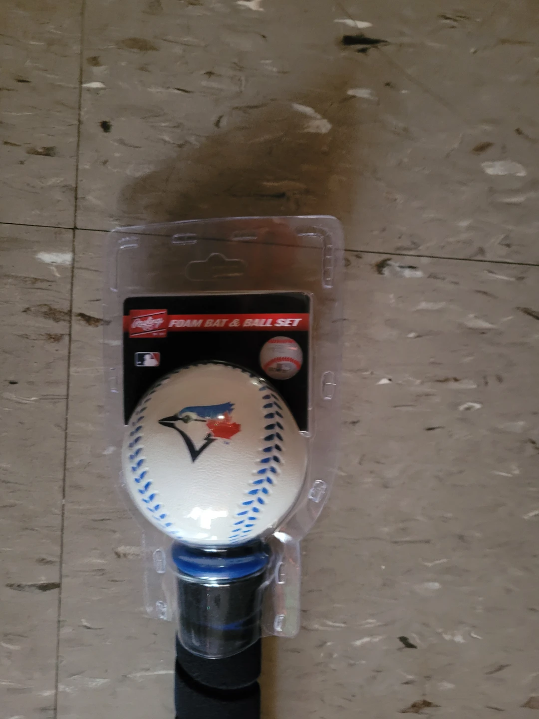 Selling a brand new Rawlings foam bat and ball set featuring the Toronto Blue Jays logo! Perfect for young baseball fans to practice their swing indoors or outdoors. The set includes a foam bat and a matching baseball, both adorned with the Blue Jays emblem
