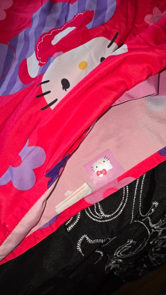 set of 2 Hello Kitty reversible pillow cases and 2 single flat sheet They feature a cute Hello Kitty design with flowers and stripes in pink and purple colours. Perfect for a Hello Kitty fan!