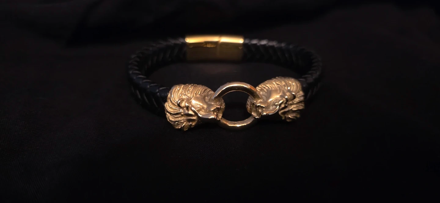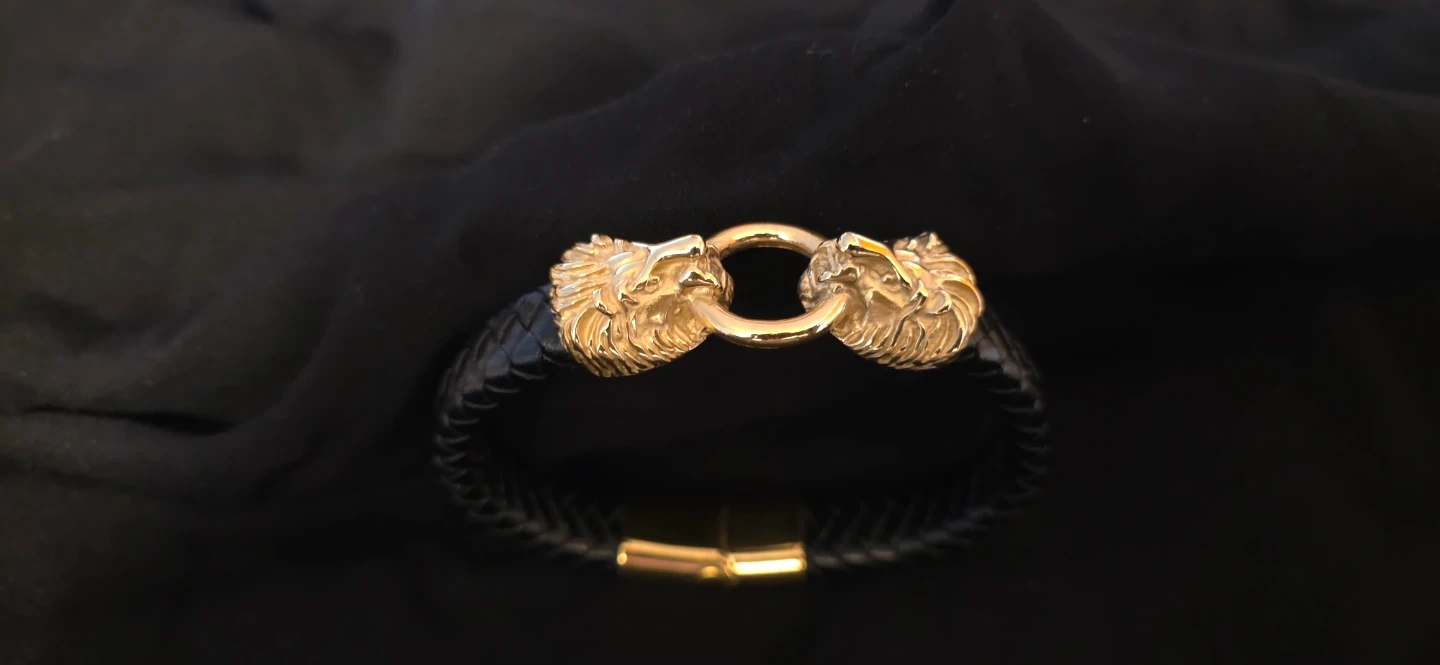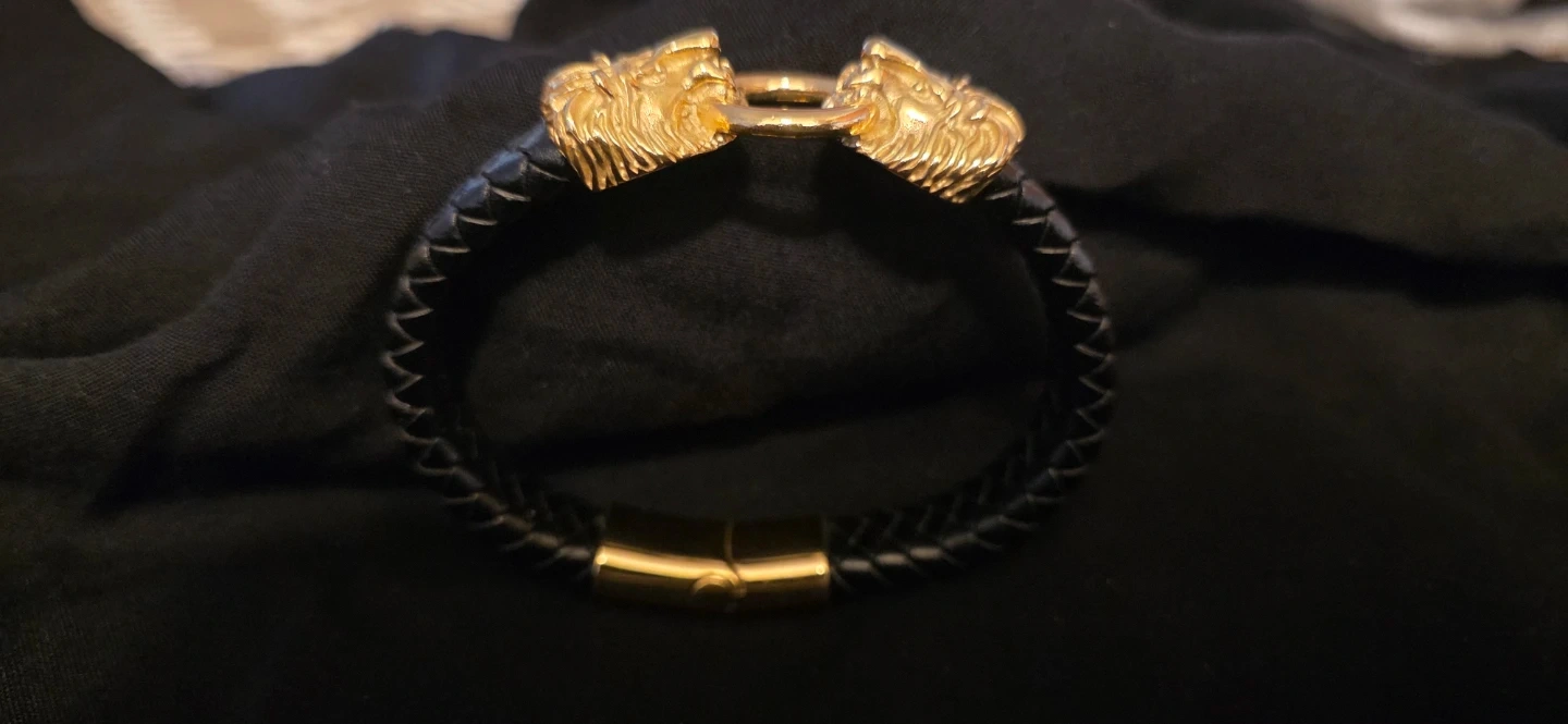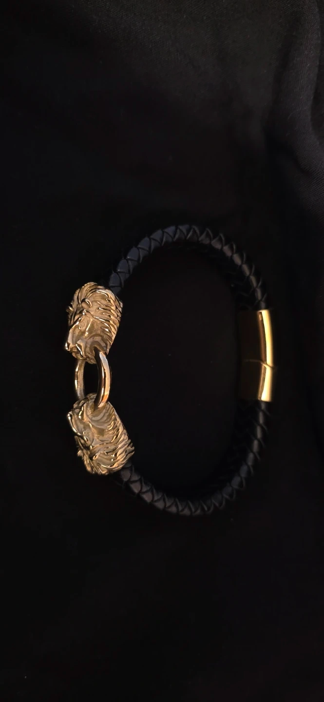 Selling a stylish braided leather bracelet with lion head details, and would make a cool accessory!