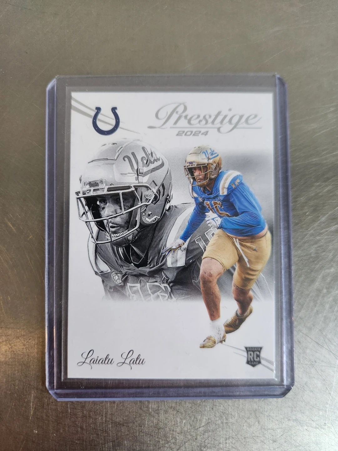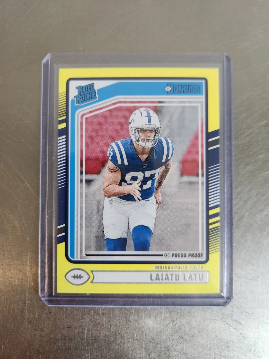 Selling some Laiatu Latu rookie cards! One is a 2024 Prestige rookie card, and the other is a Donruss Rated Rookie Press Proof card. Great for any football card collector!