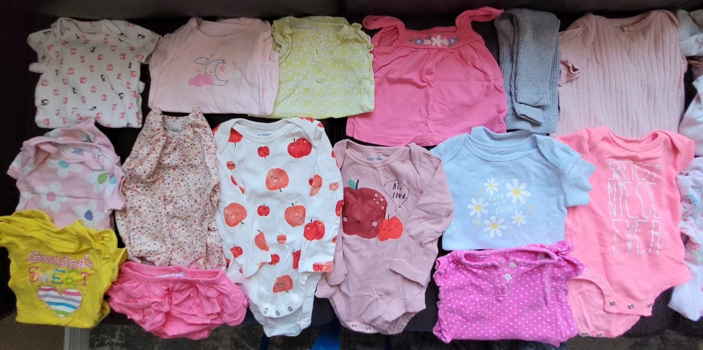 A cute collection of baby onesies, perfect for your little one. They're in great condition and ready for a new home!