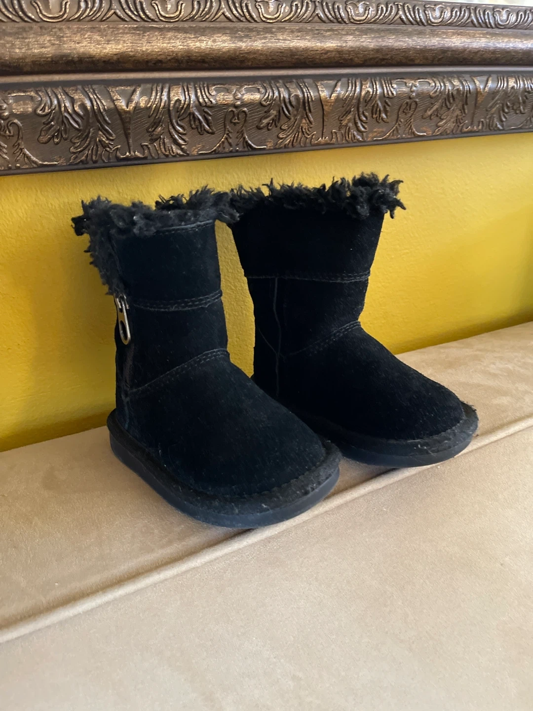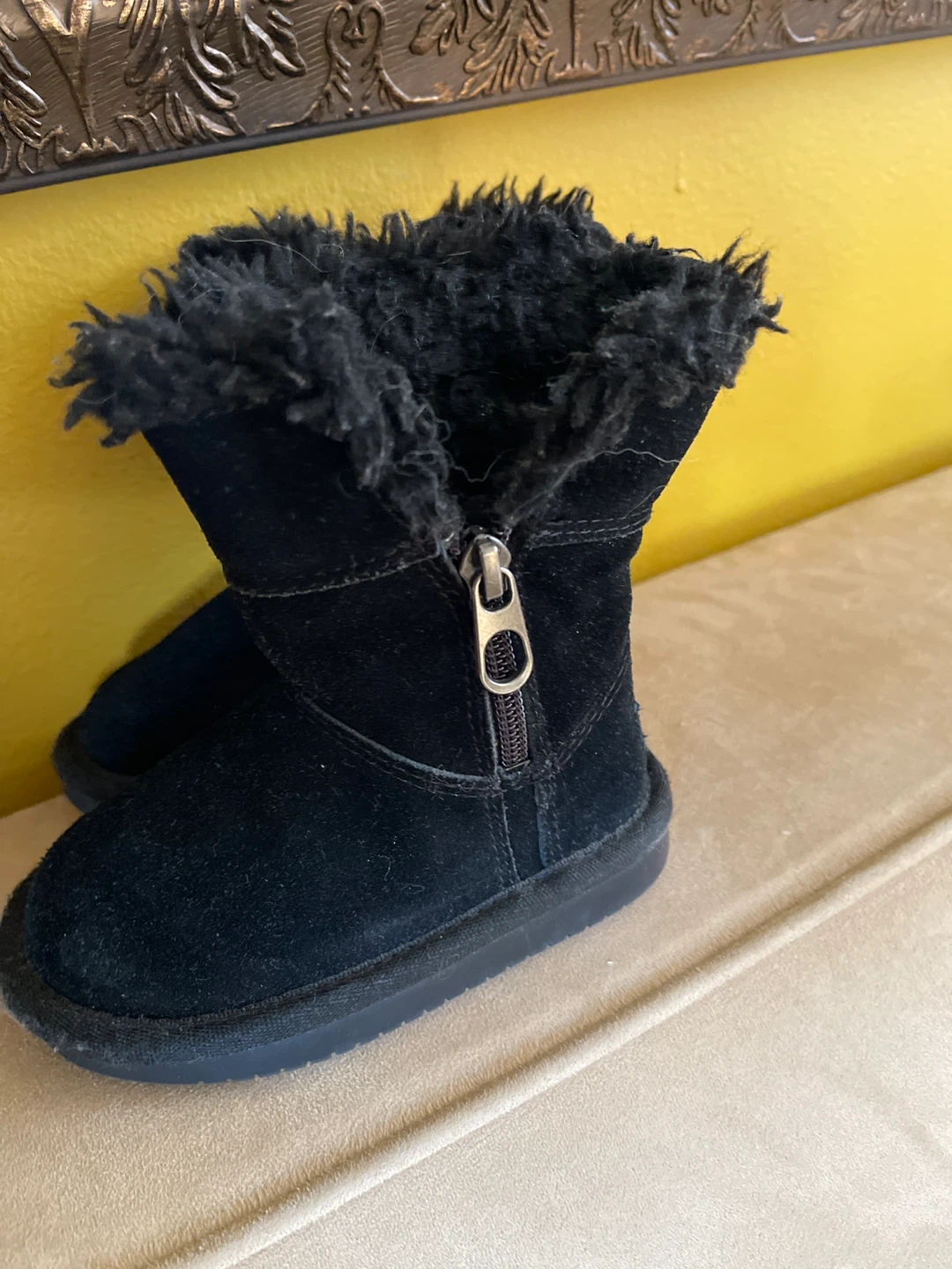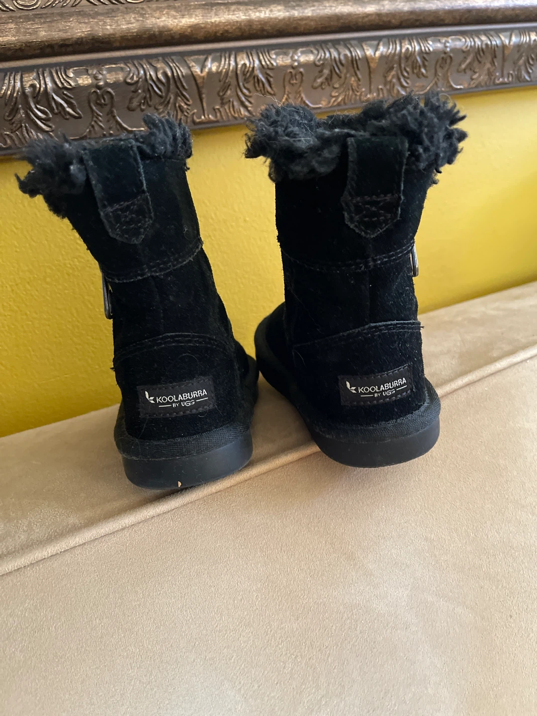 These are a pair of black boots from KOOLABURRA by UGG. They have a zipper and fur trim. Size 6 toddler-girls . Excellent condition