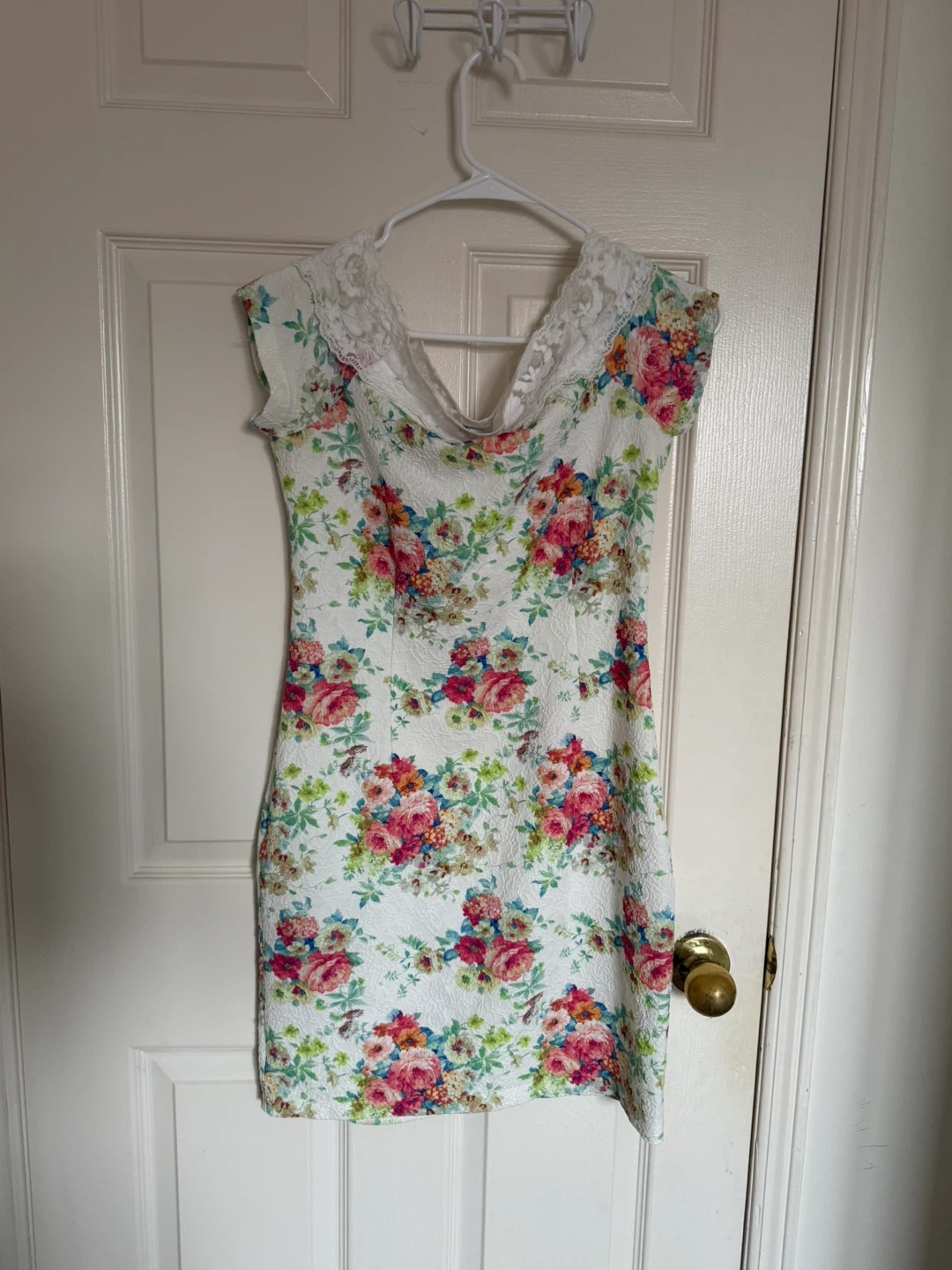 Selling a lovely BRZ dress with a floral print and delicate lace detailing! It's a size 38 and would be a great addition to your wardrobe for a special occasion or a fun day out