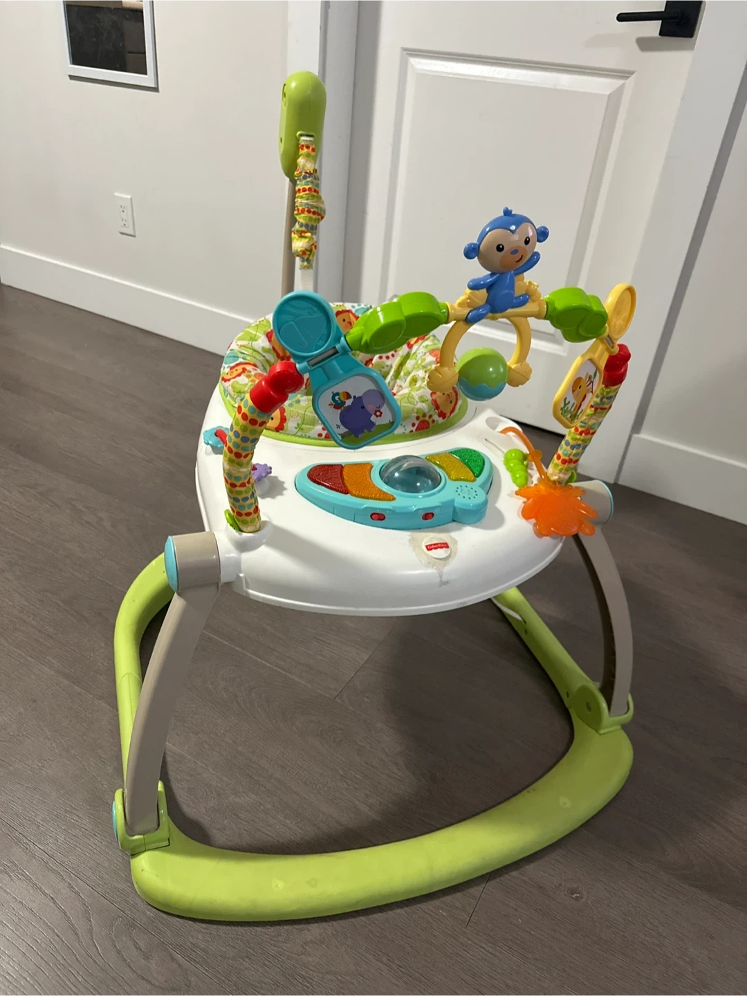 Selling a Fisher-Price Jumperoo! It's in great condition and ready for a new little one. It's perfect for keeping your baby entertained and active. The seat spins 360 degrees so baby can reach all the toys!