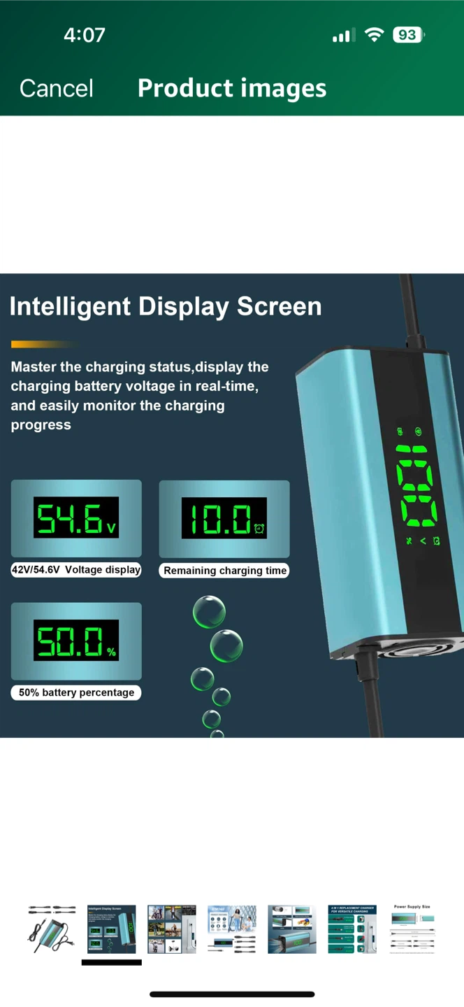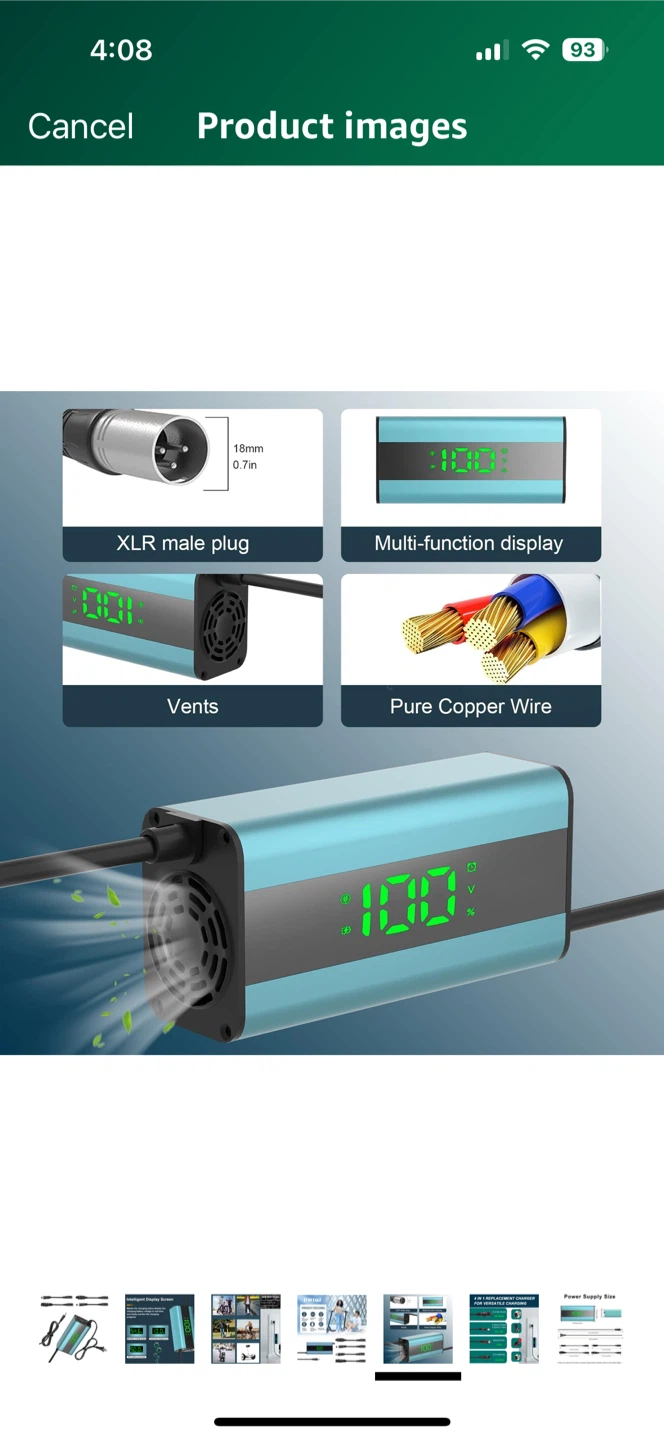 Selling a TOMOFREE Li-ion Charger model YLT-180W-320LCC. It features an intelligent display screen to monitor the charging status in real-time. It's compatible with ternary lithium batteries and has a maximum power of 84W.