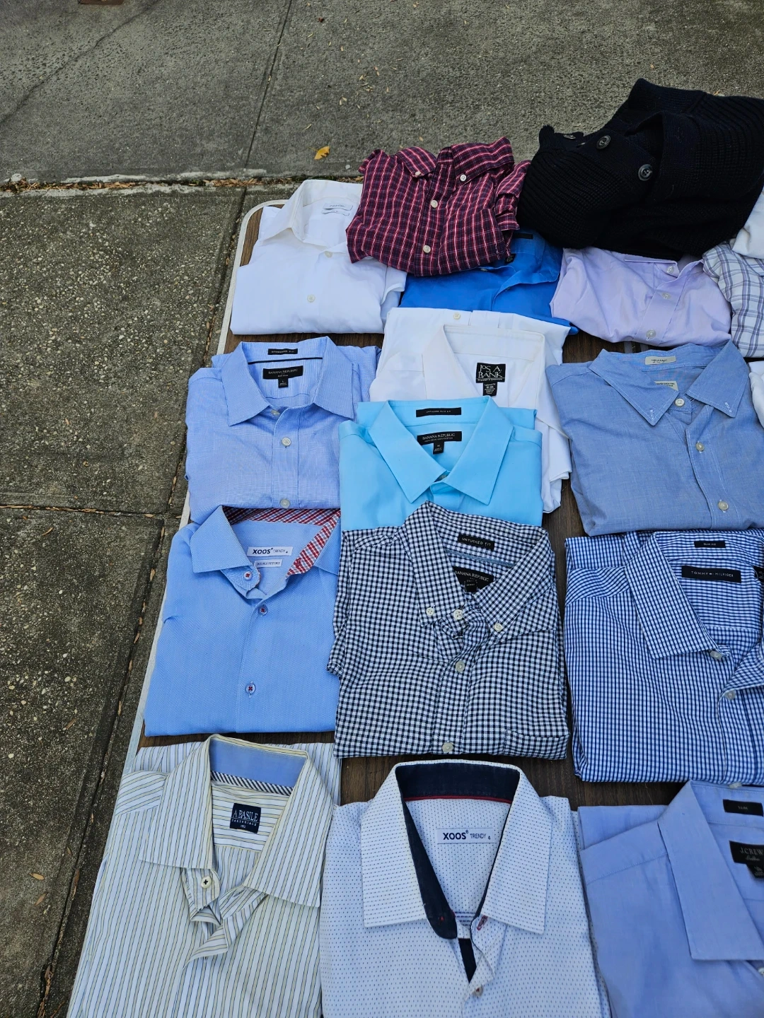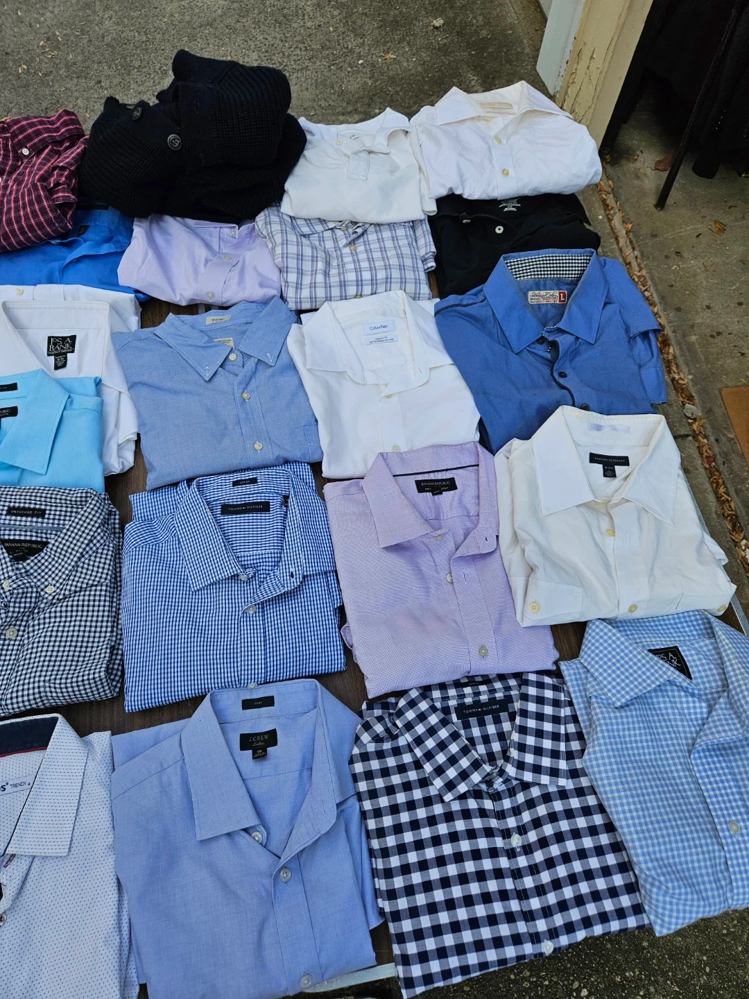 25 mens brand name used shirts.. size large slim fit. Banana Republic, tommy hilfiger, jcrew , calvin klein, and others. These were selling for up to $90 each in stores . Must take all. Cash. $100 for all great only $4 each. Must pickup ASAP sheepshead bay brooklyn