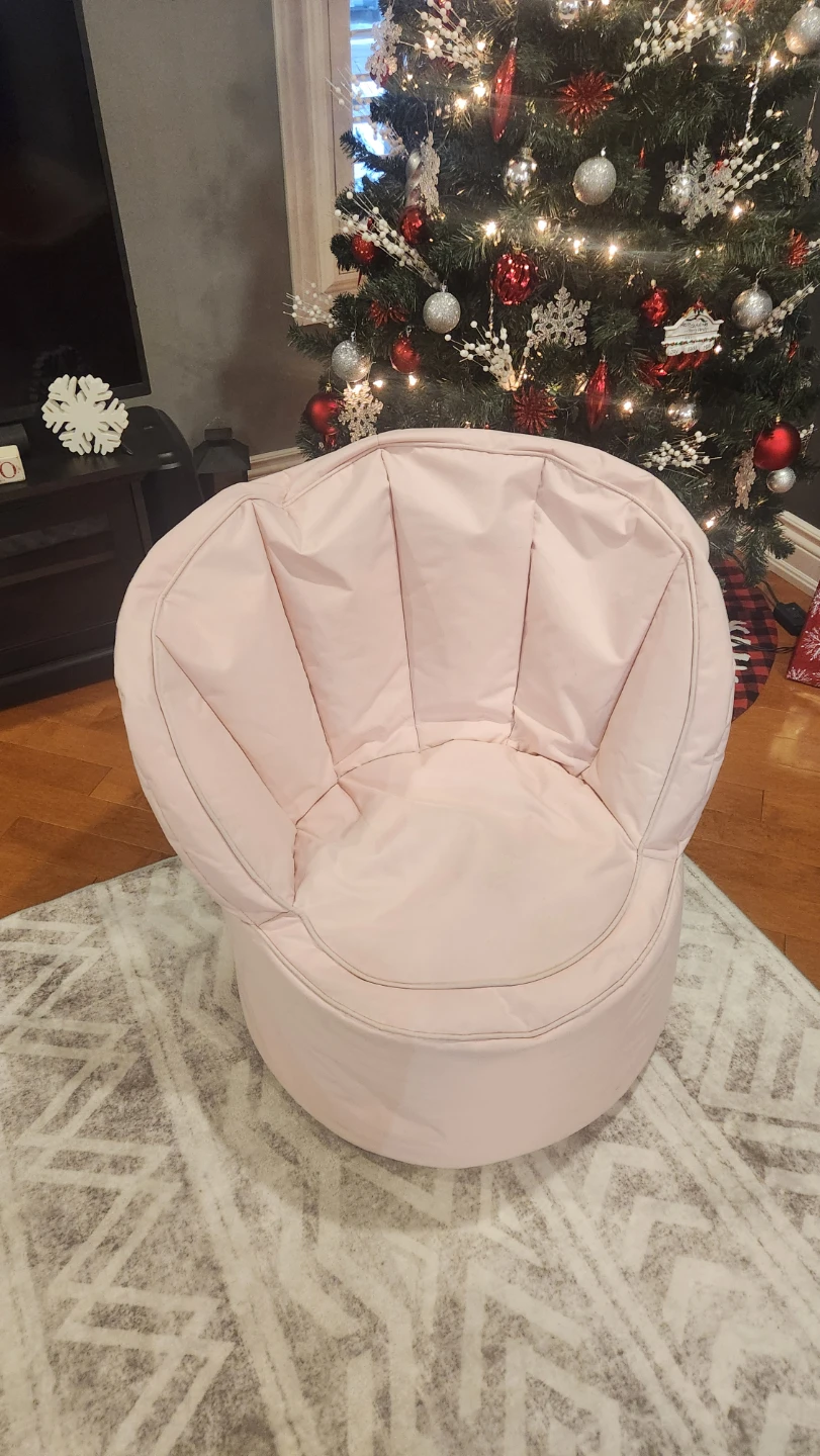 This is a cute pink bean bag accent chair that would be perfect for a kids room or play area! It's in great condition and ready for a new home