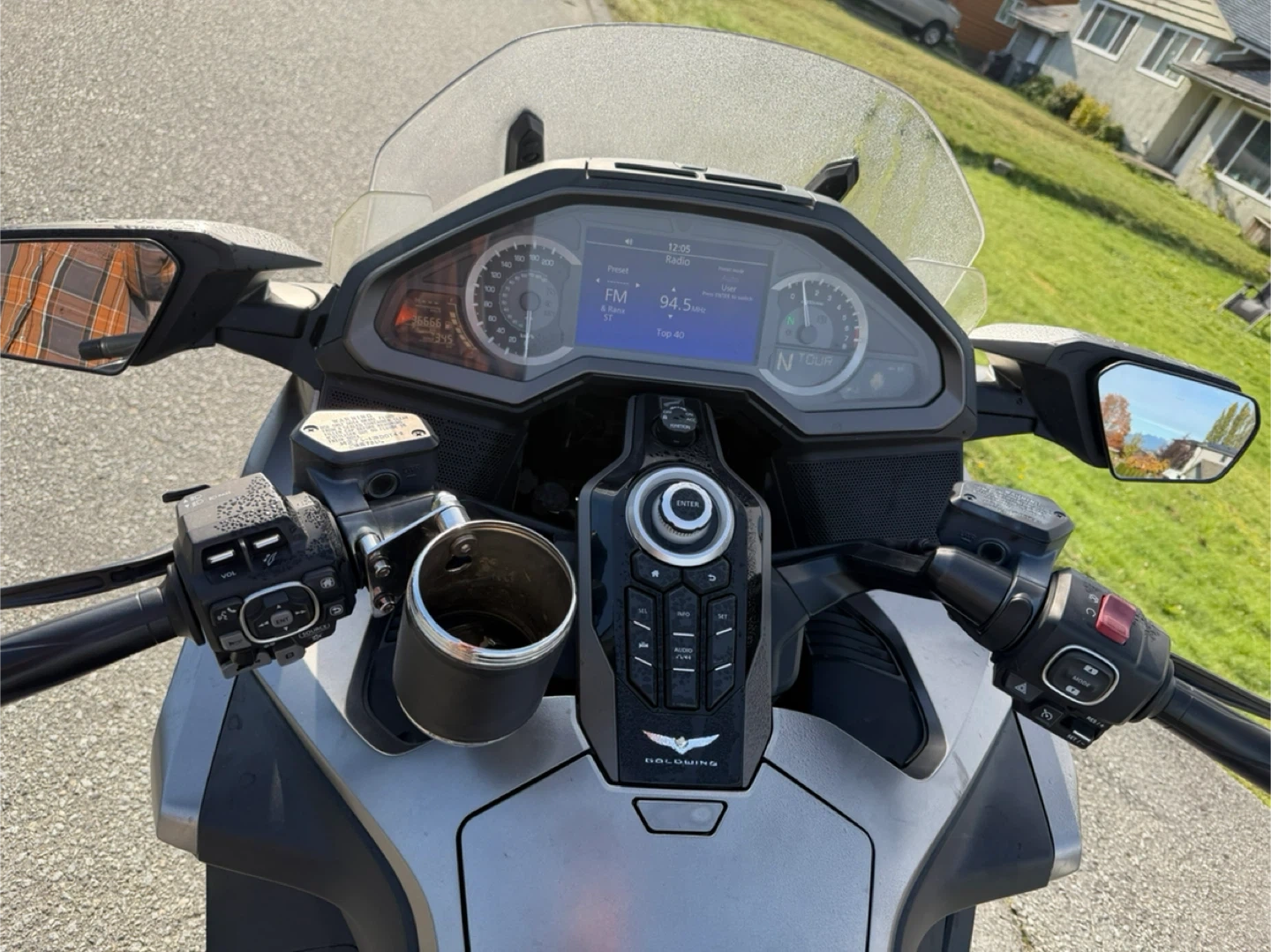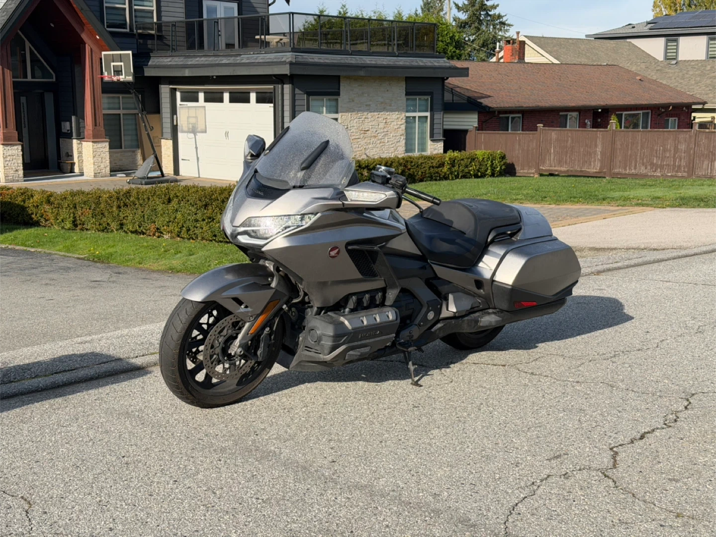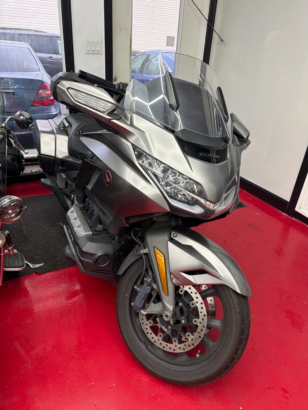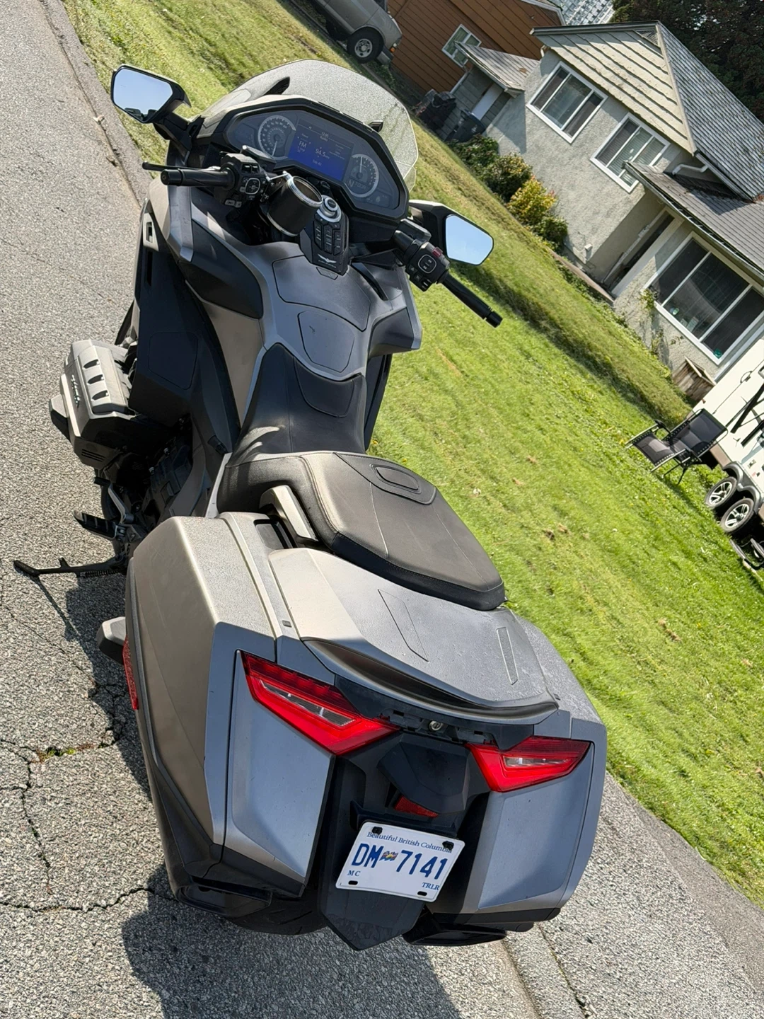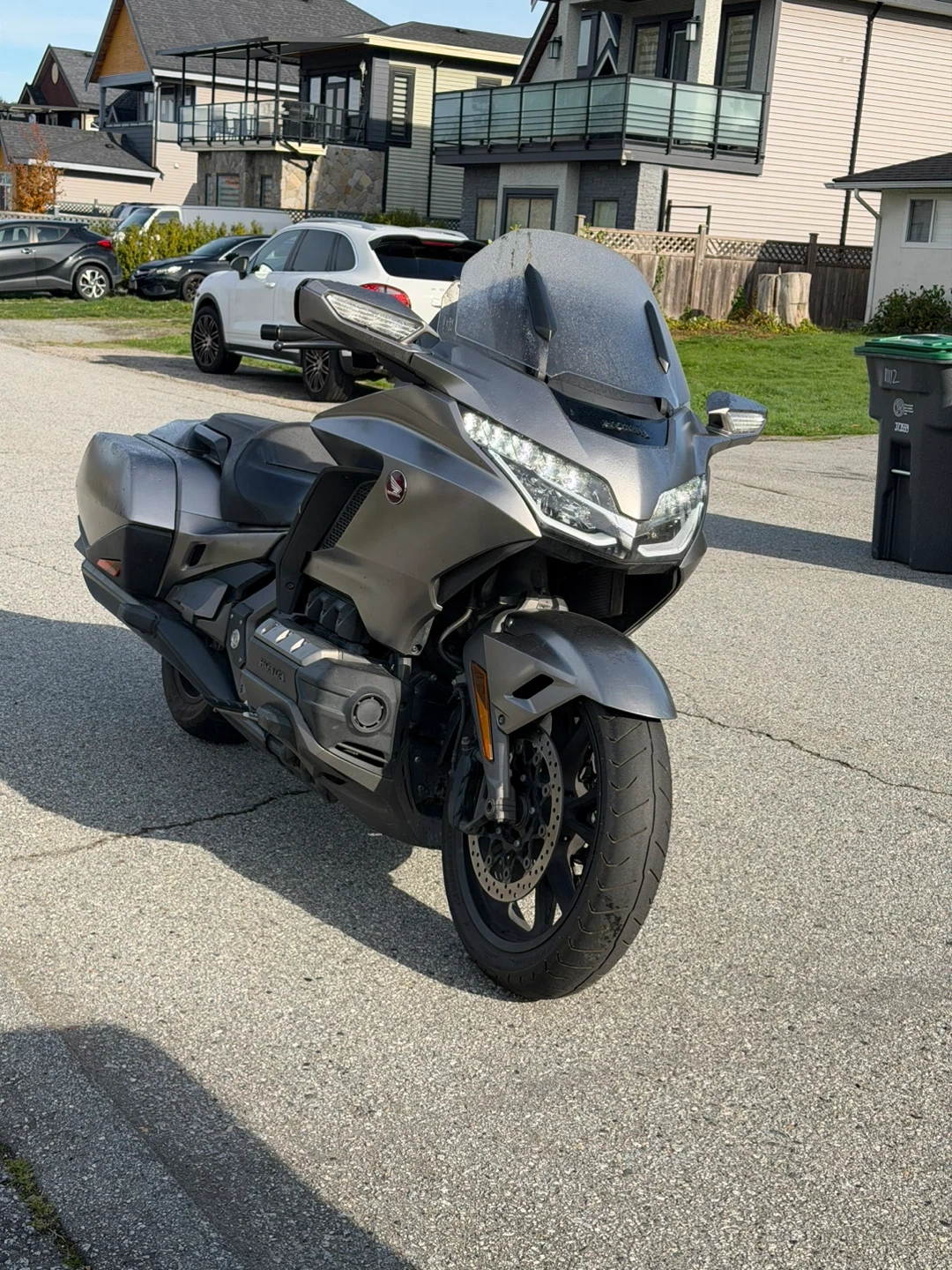 Selling a Honda Gold Wing Touring motorcycle. It's in good condition and ready for a new owner! It features a comfortable seat and spacious storage compartments, perfect for long rides and adventures.