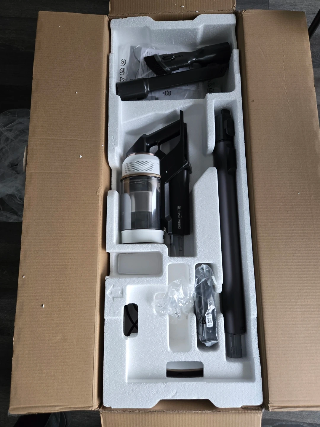 Selling a Samsung Bespoke Jet cordless stick vacuum in white! This vacuum comes with its box and all included components.