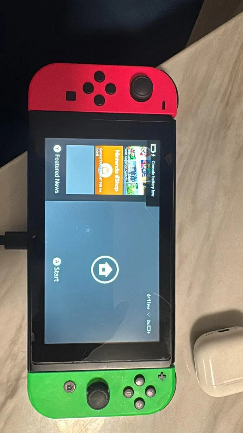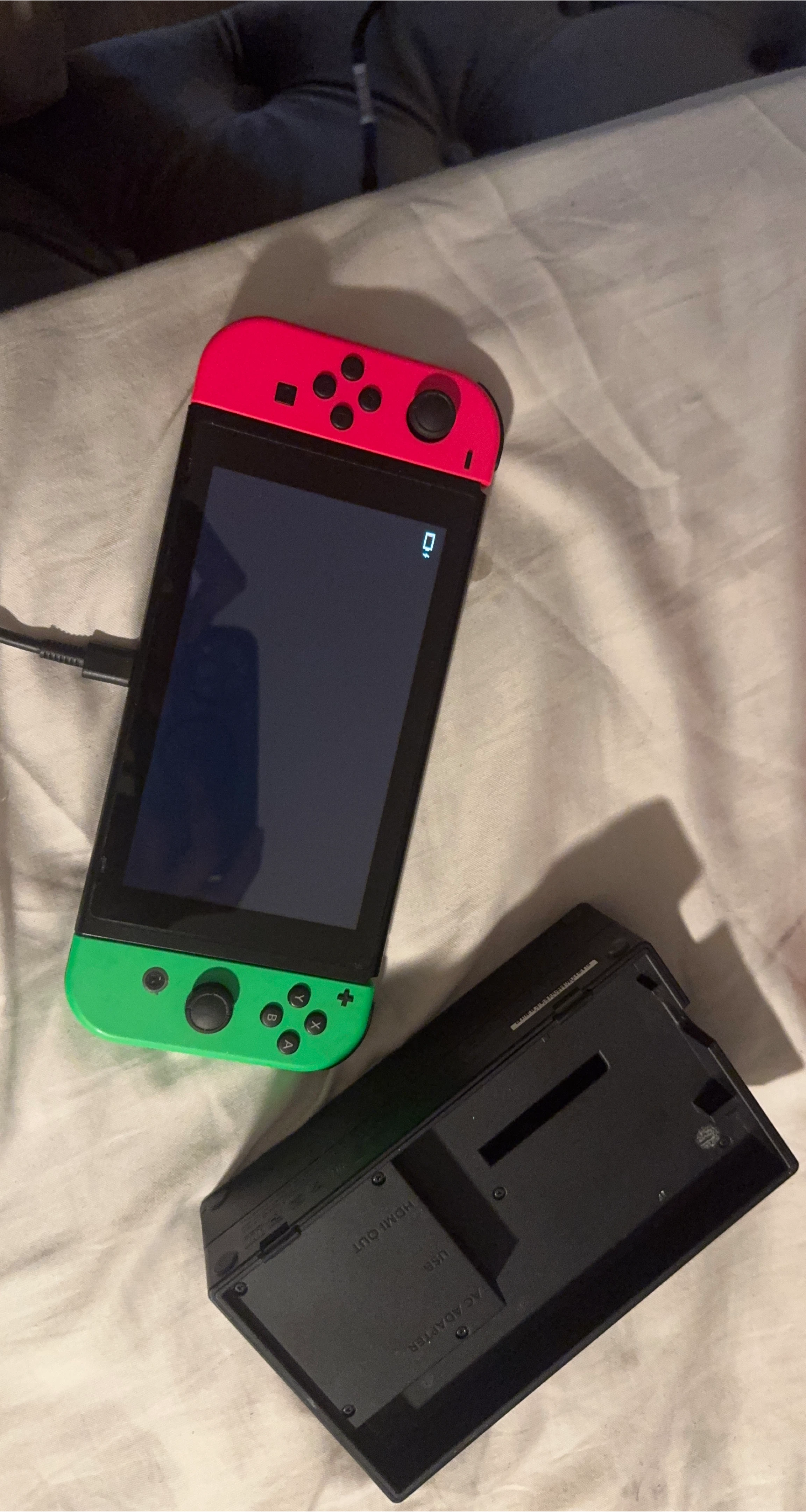 Selling a used Nintendo Switch with the iconic red and green Joy-Cons! It comes with the dock for TV play. The screen has no scratches and the console is in great working condition. Perfect for gaming on the go or at home