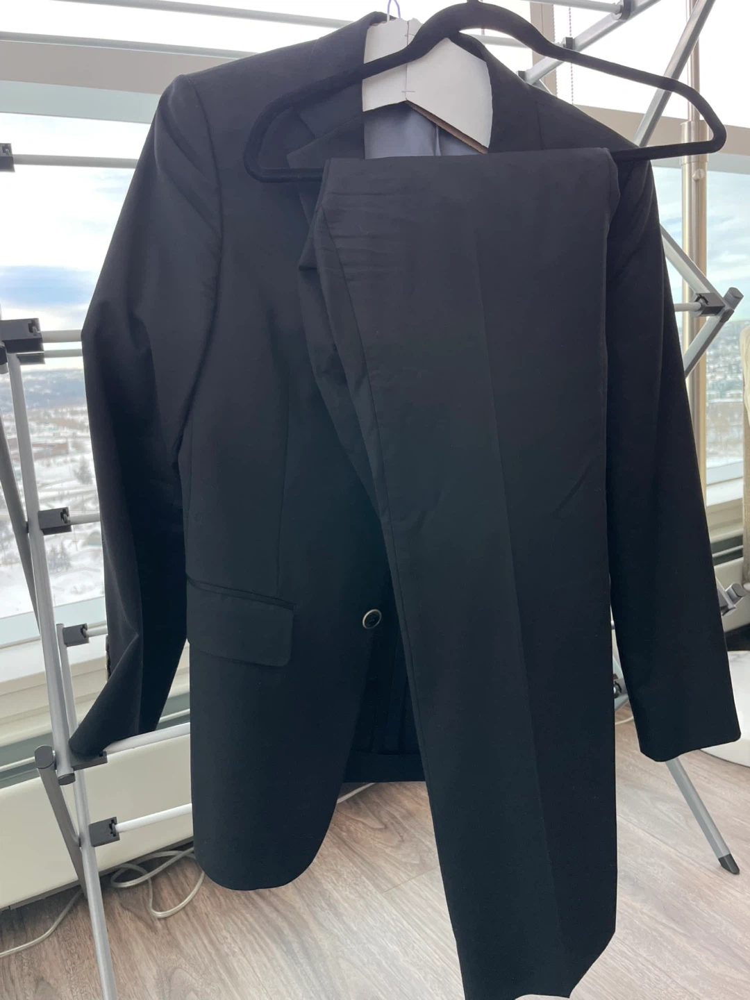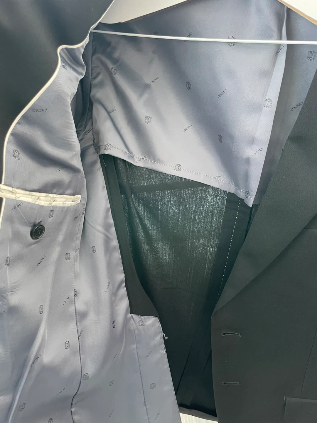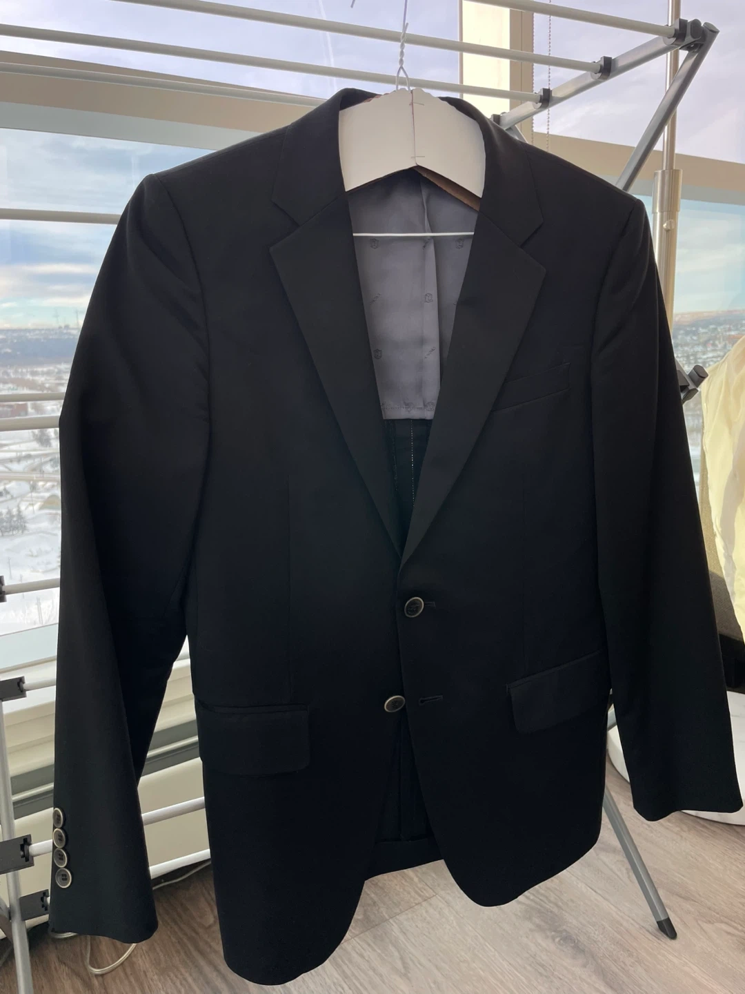 Selling a L'UOMO Italy two-piece suit in black! It's in great condition and ready for a new owner. Perfect for any formal occasion or a sharp business look. Purchased in South Korea.