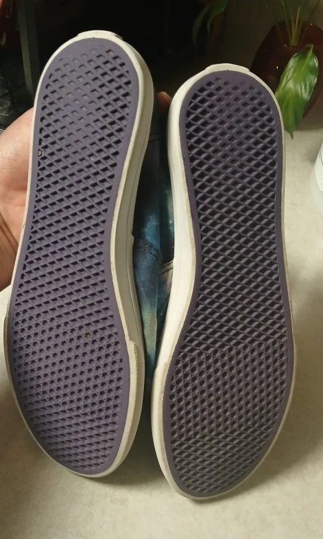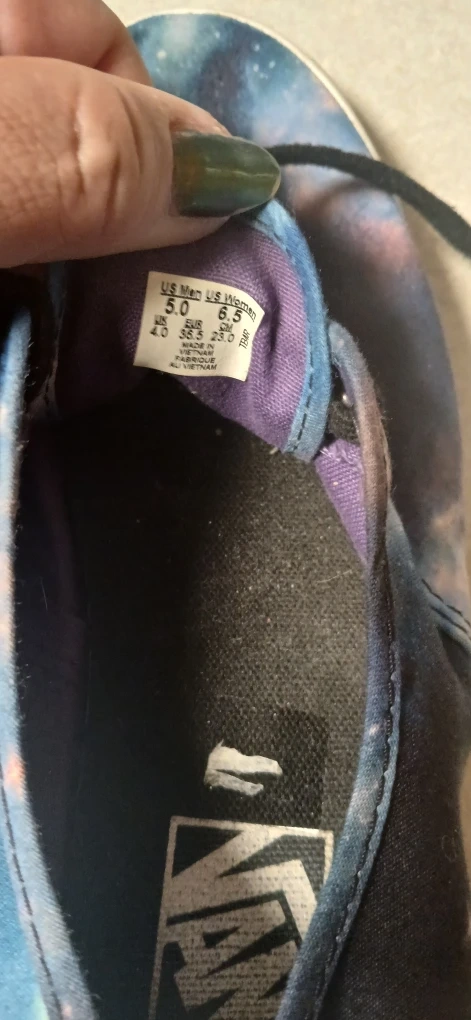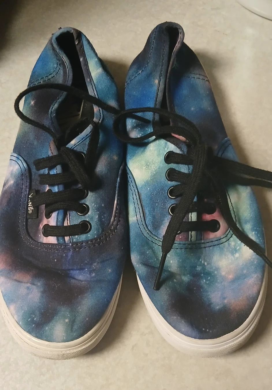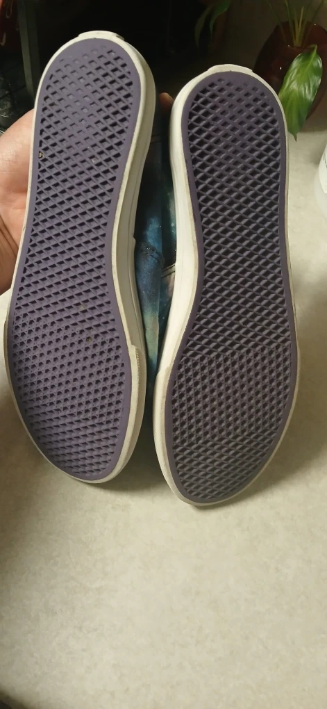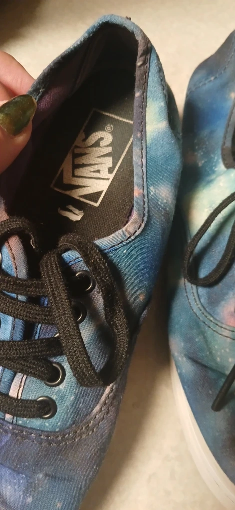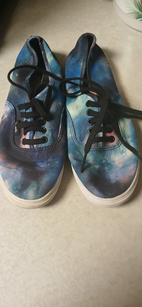 Selling a pair of Vans sneakers with a galaxy print! They are a women's size 6.5. These are in used condition never worn.