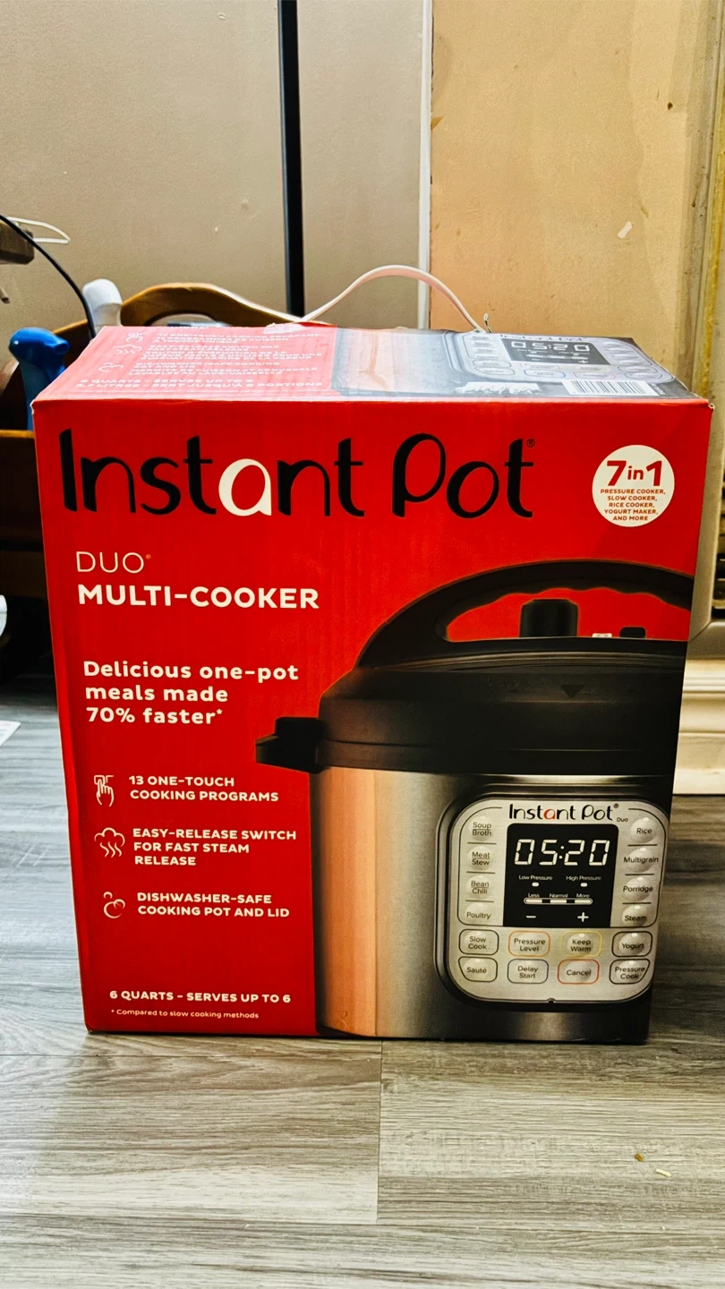 Selling a brand new Instant Pot Duo 7-in-1 multi-cooker. It's a 6-quart size and comes in the original box with all components and instructions. This pot has 13 one-touch cooking programs and an easy-release switch for fast steam release. It's also dishwasher-safe for the cooking pot and lid. Delicious one-pot meals are made 70% faster!
