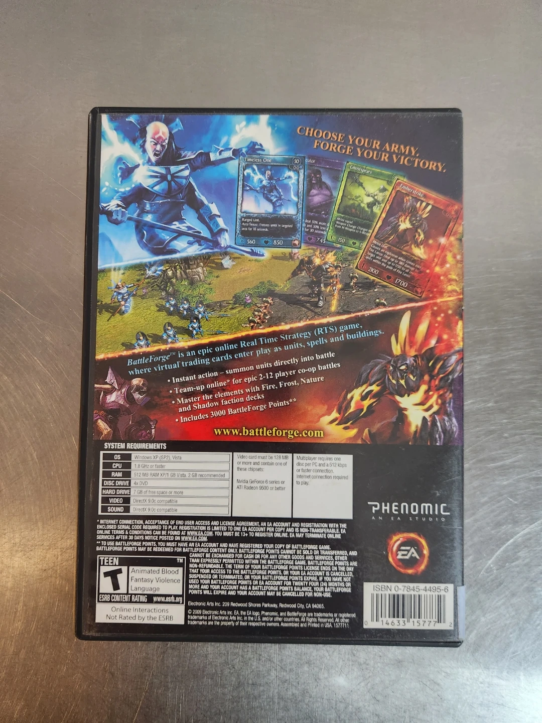 Selling a used BattleForge PC game. It's an epic online real time strategy game where virtual trading cards enter play as units, spells and buildings. Includes 3000 BattleForge Points. Requires Windows XP/Vista, 128 MB RAM (XP) or 2 GB RAM (Vista), and 6 GB of free space or more.