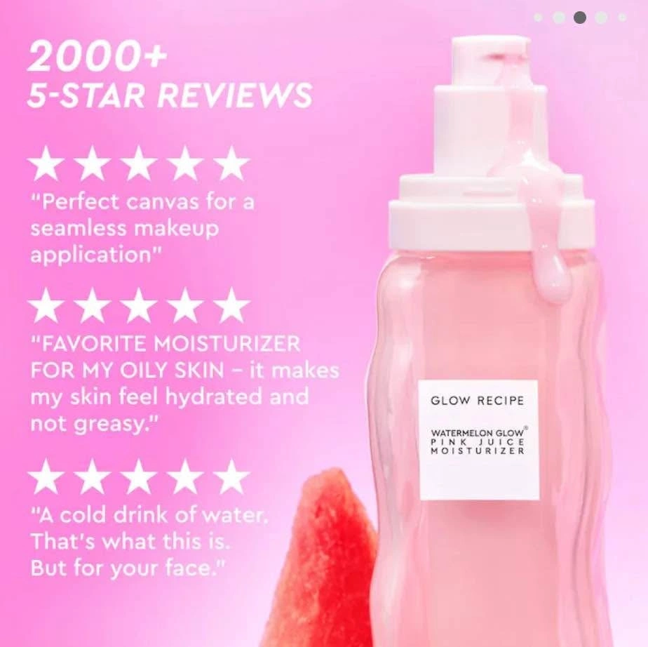Brand new, unused glow recipe pink juice mini moisturizer. Regularly $28.50. Please keep in mind that this does not come with the box because I received this from a set. Public meetup and Firm on price.