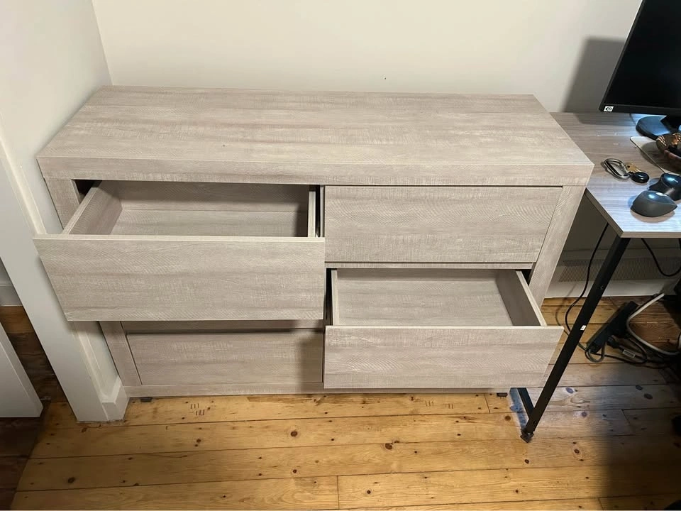 Light Gray 6 Drawer Dresser, Desk with Storage Shelf and Console Table. All in great condition. Open to offers.