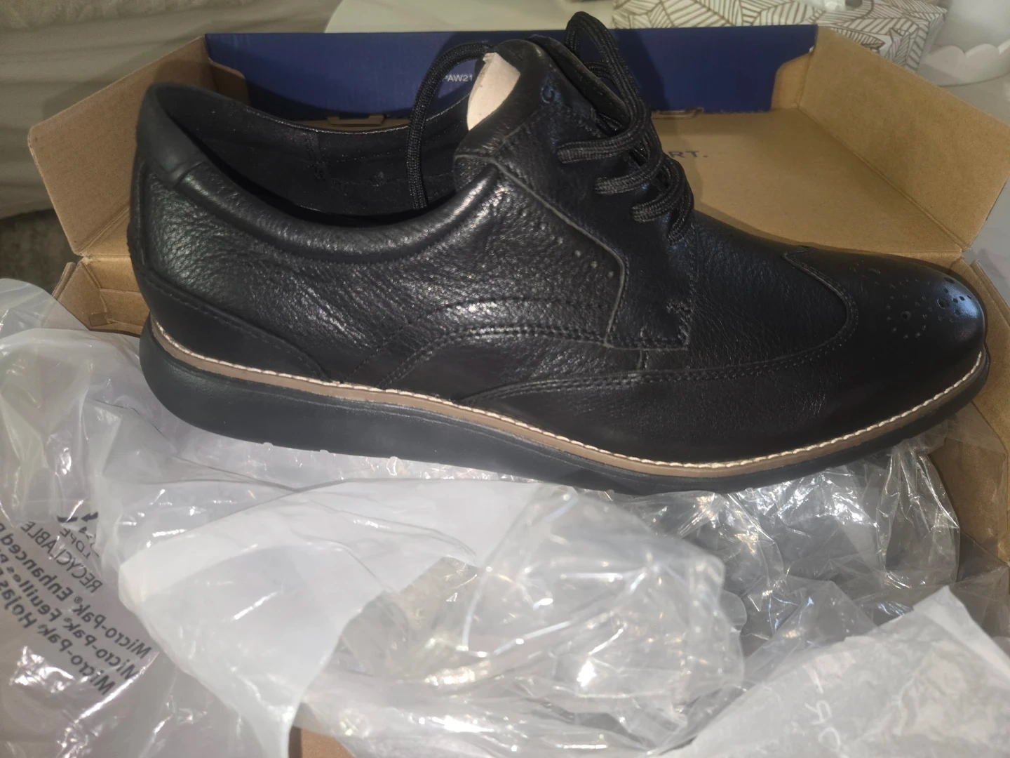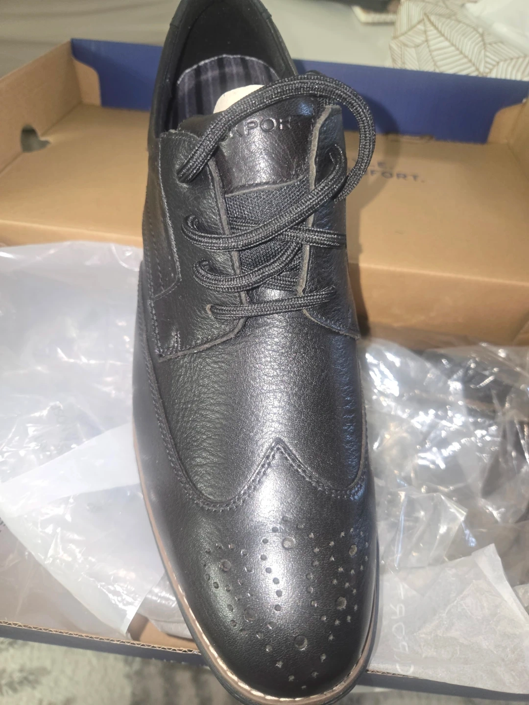 Rockport TM Craft Wingtip shoes in black leather, size 11M. These are in great condition and come with the original box. Perfect for dressing up or down! Never used. Basically new!