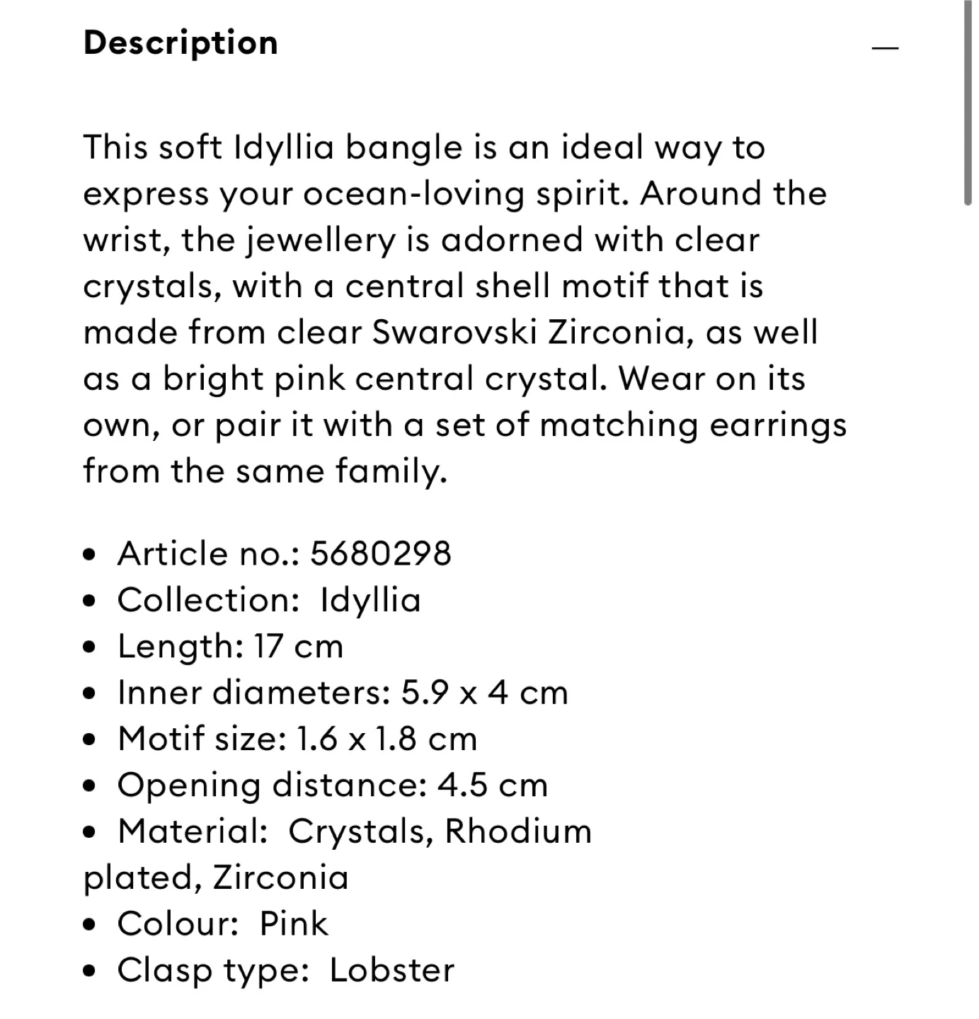Swarovski Idyllia bangle - Pink, Shell #Cleanout