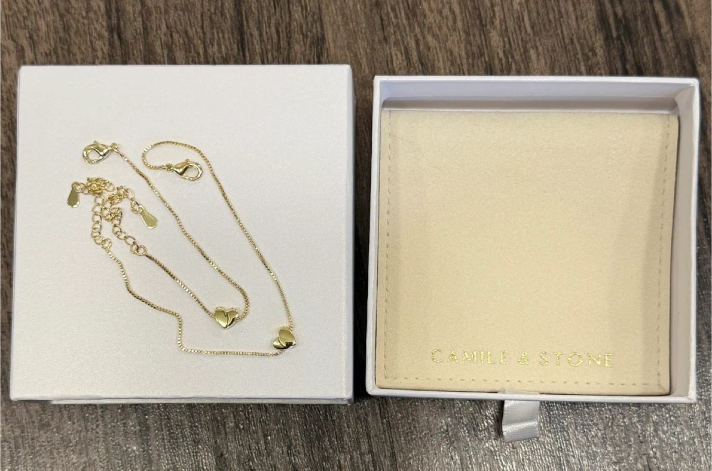 Selling a brand new cute Camille & Stone solid Heart Chain Bracelet set! Comes in its original box, perfect for gifting or pairing with your love one :)