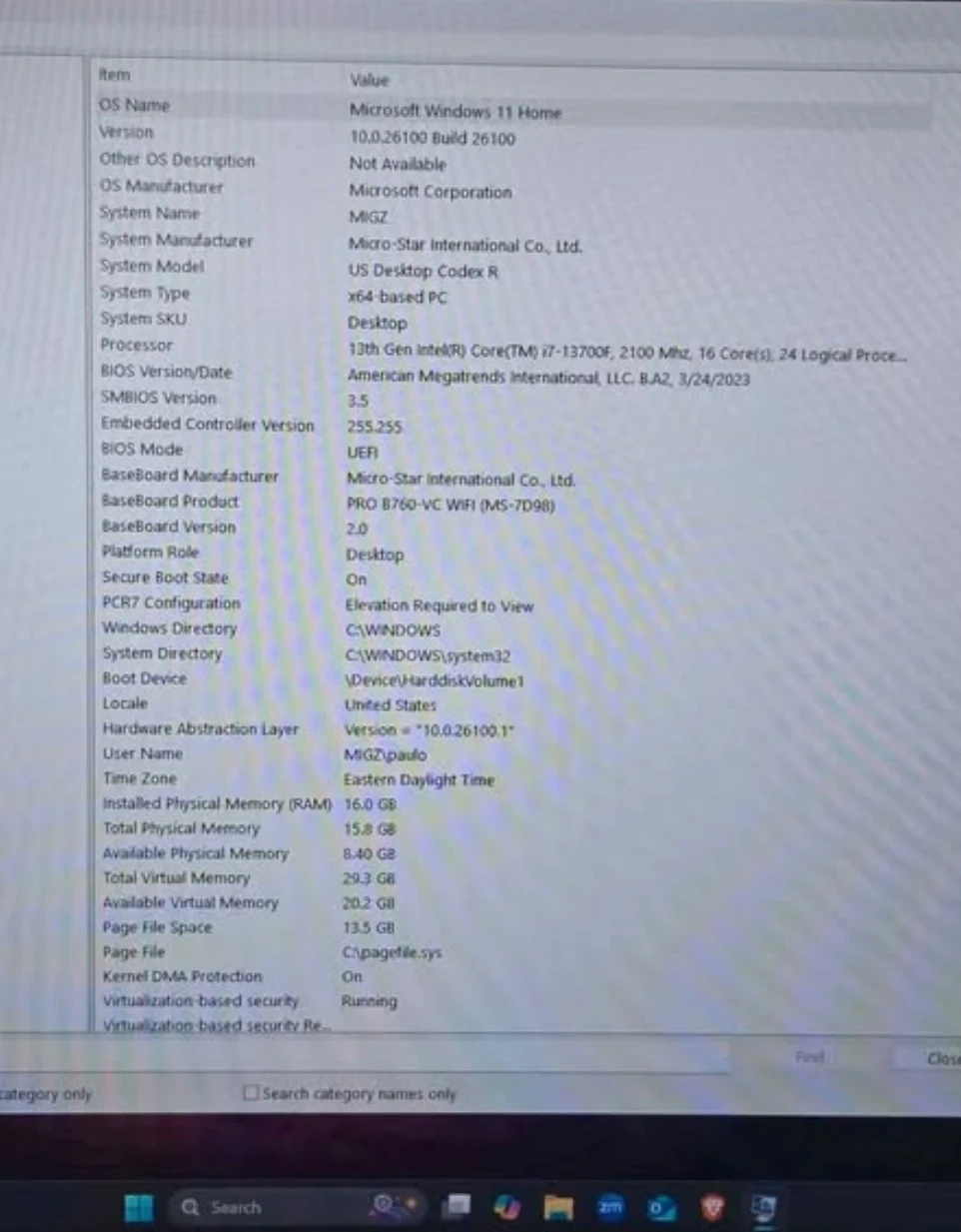 CPU: Intel Core i7-13700F, 2100Mhz, 16 cores