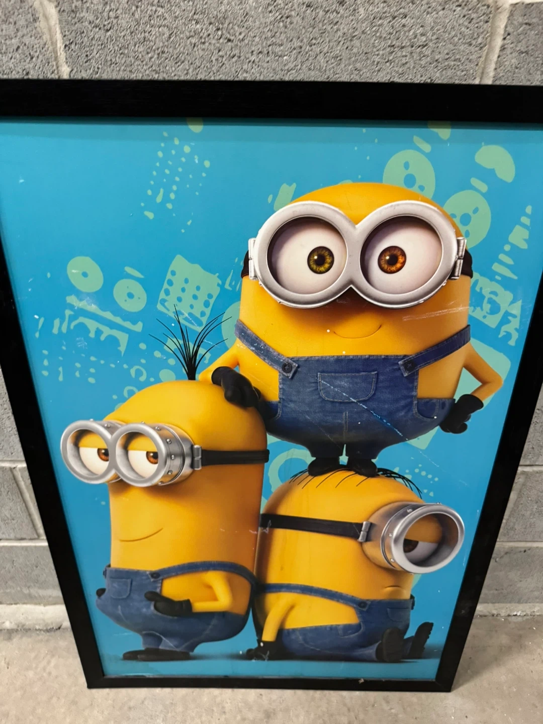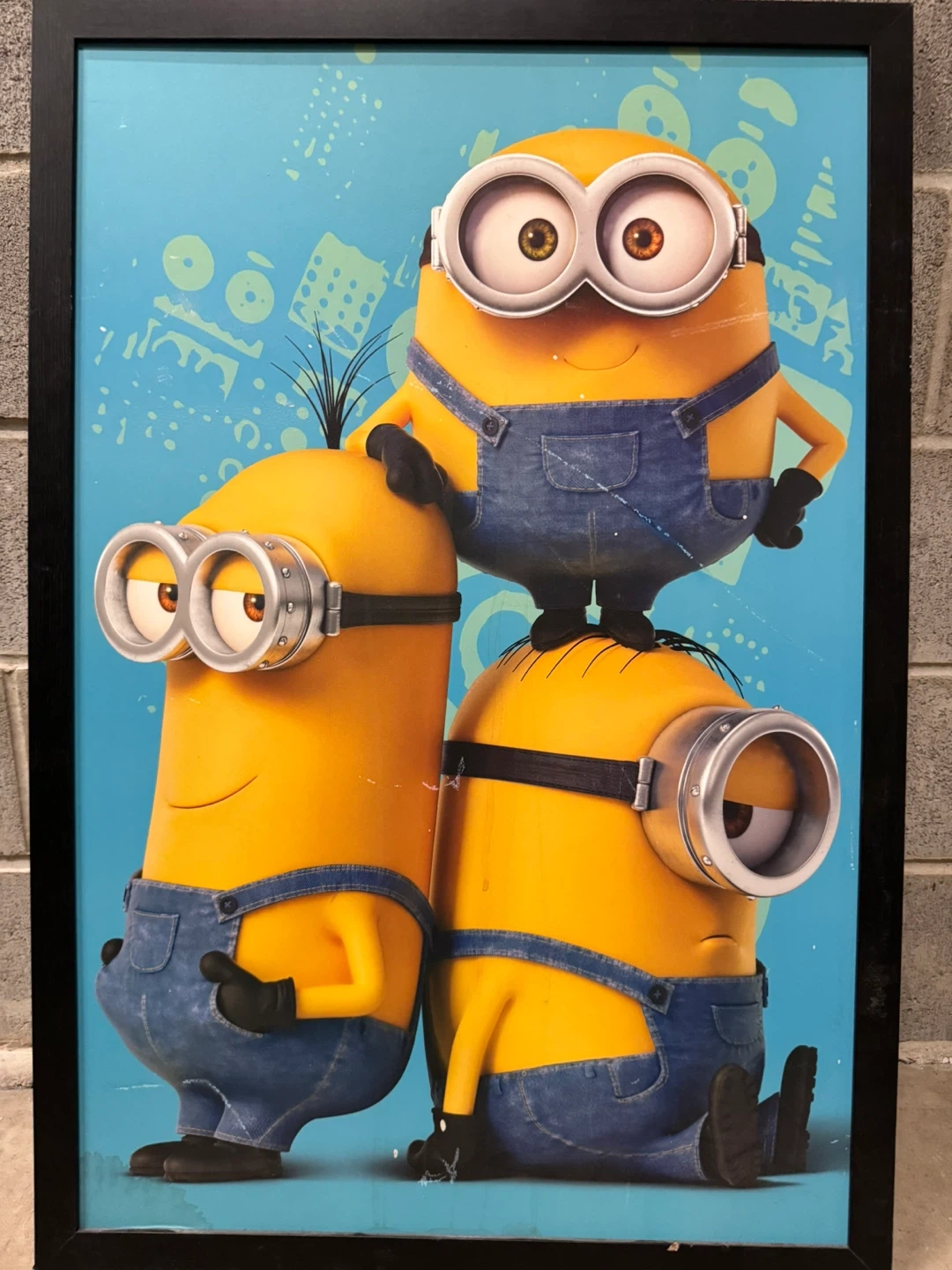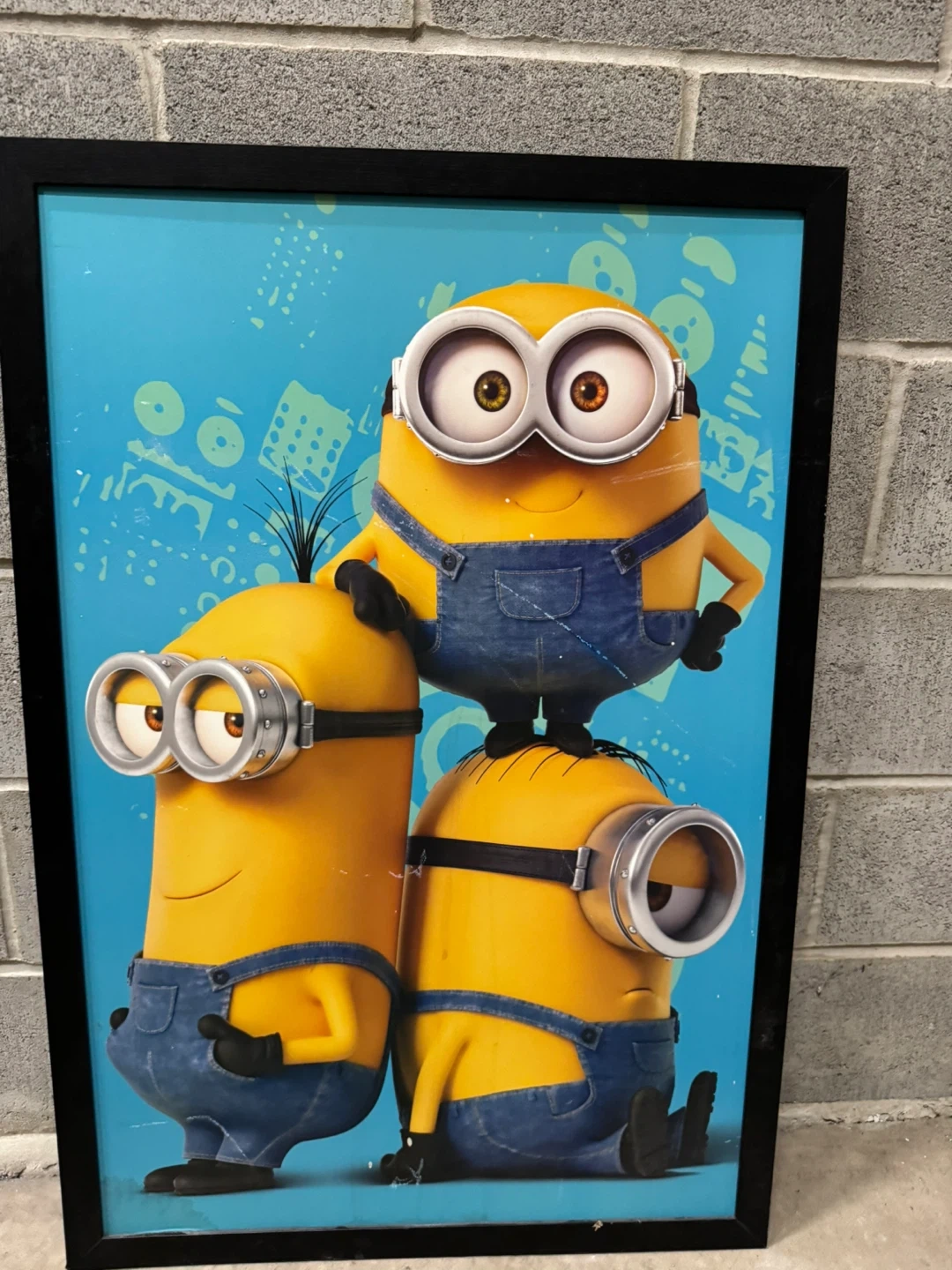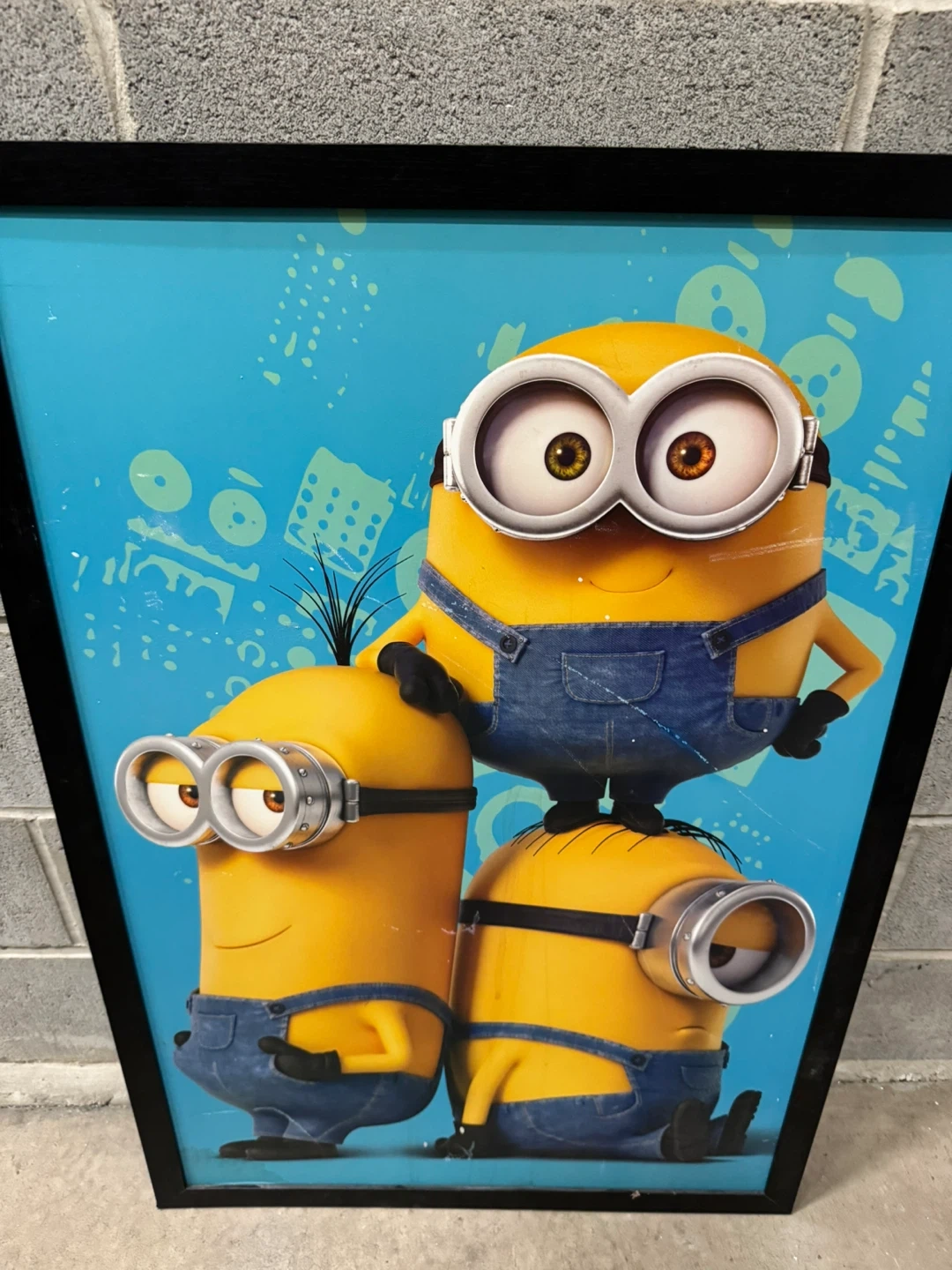 Here's a framed print featuring the Minions! It's a fun piece of decor for any Minions fan Despicable Me Minions Bob Stuart Kevin Framed 25.5x38. 7$cash