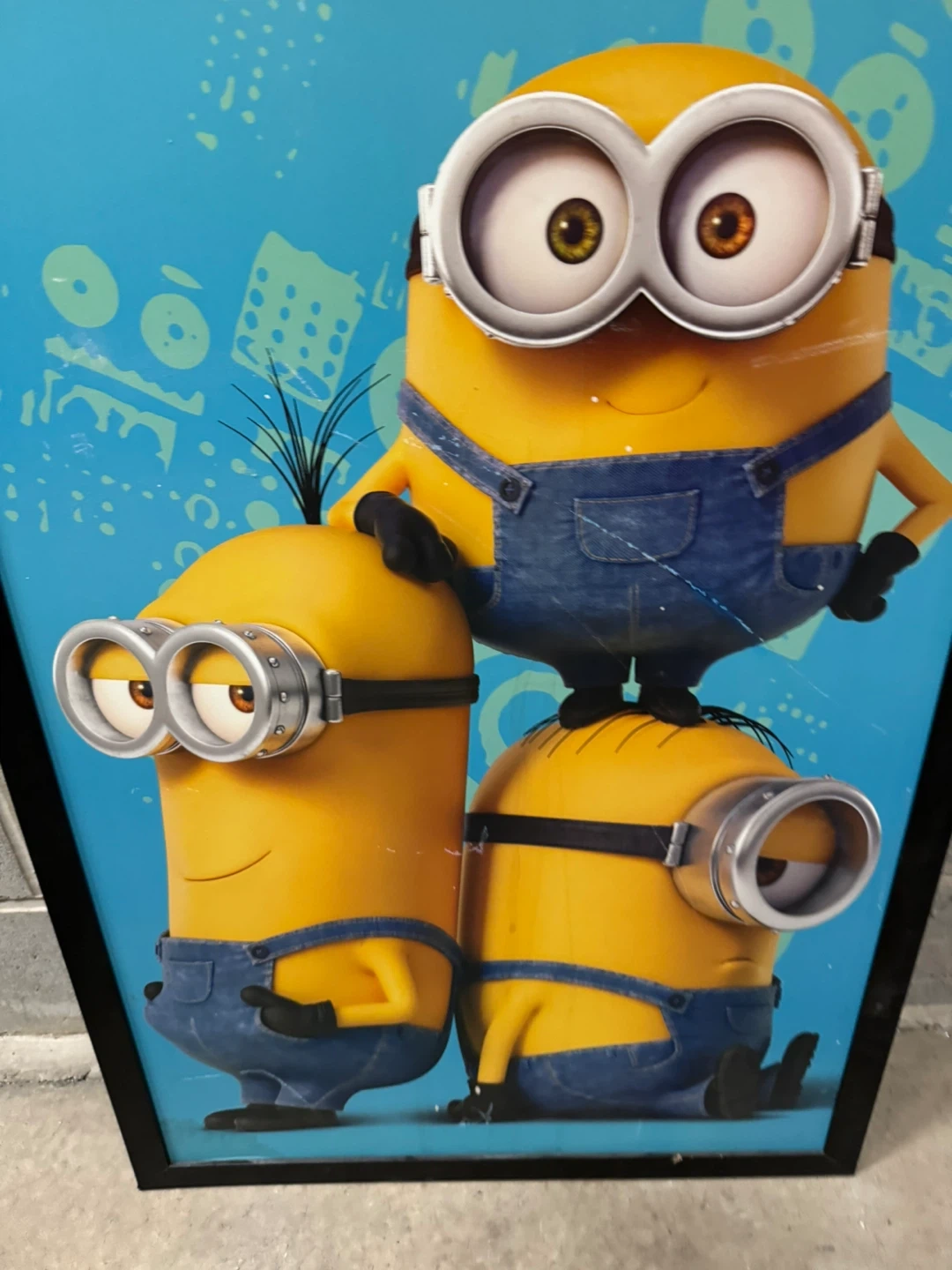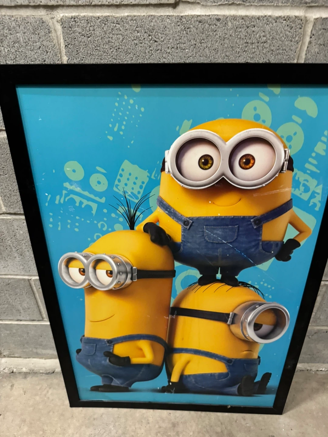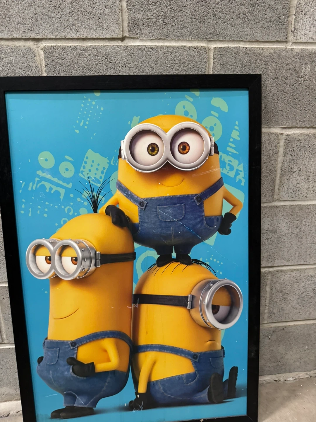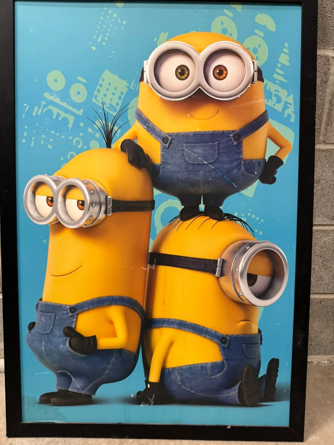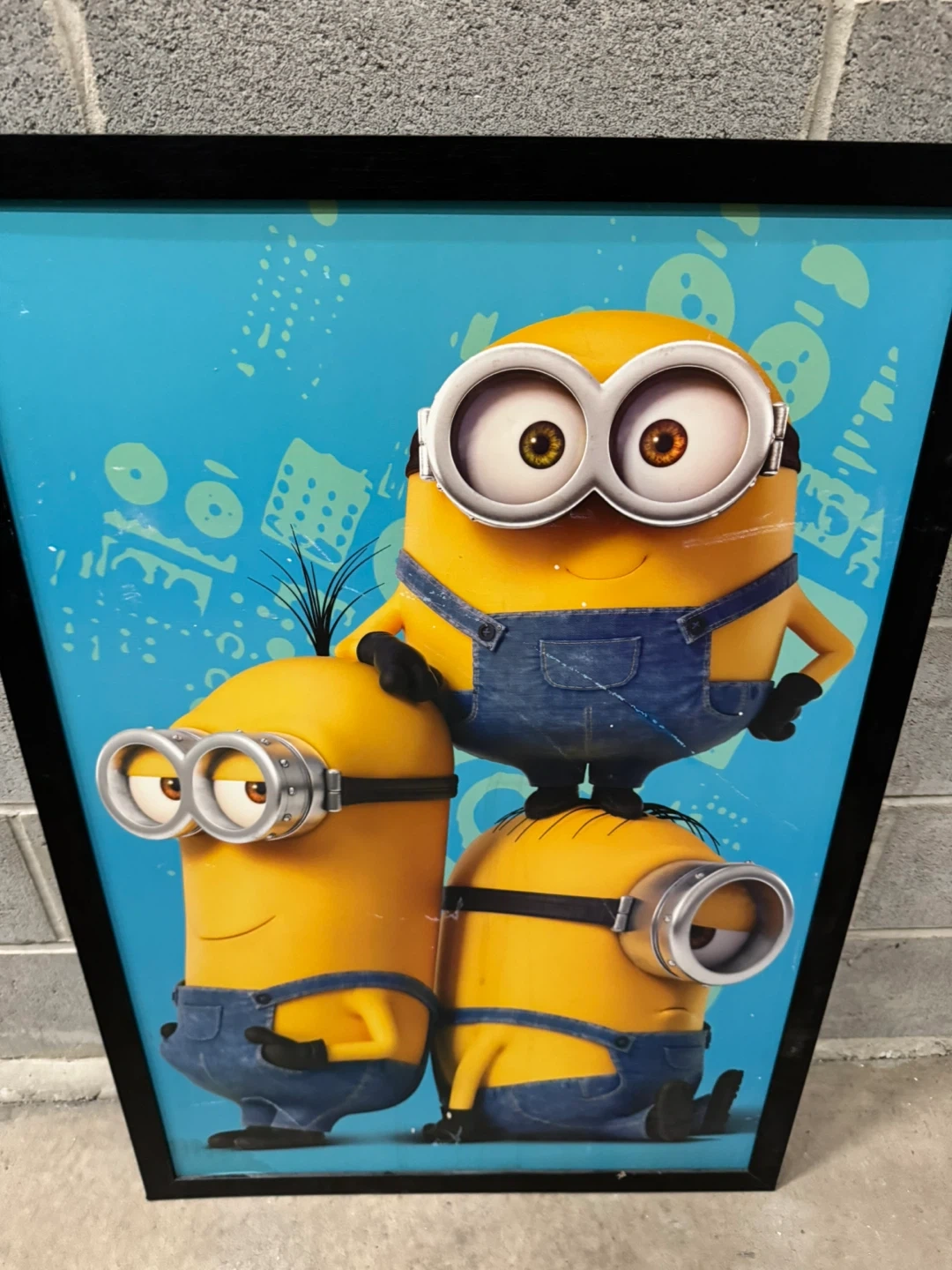 Here's a framed print featuring the Minions! It's a fun piece of decor for any Minions fan Despicable Me Minions Bob Stuart Kevin Framed 25.5x38. 7$cash