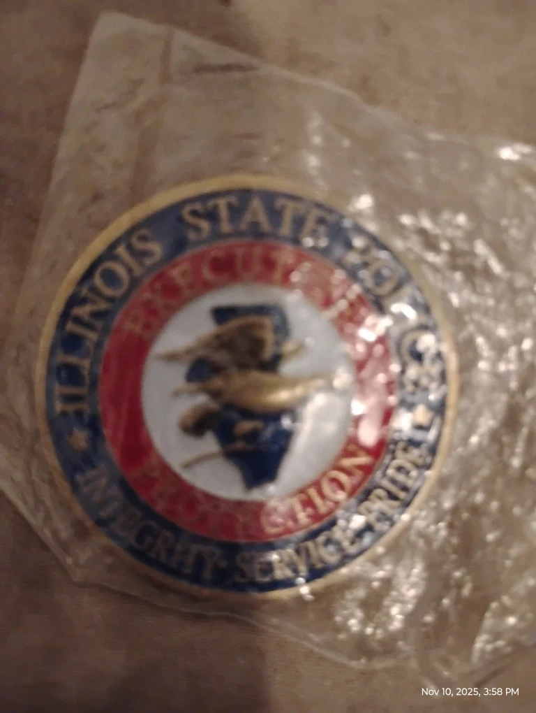 Selling an Illinois State Executive Protection challenge coin. It features a detailed design with the Illinois state seal and the words "Integrity, Service, Pride".