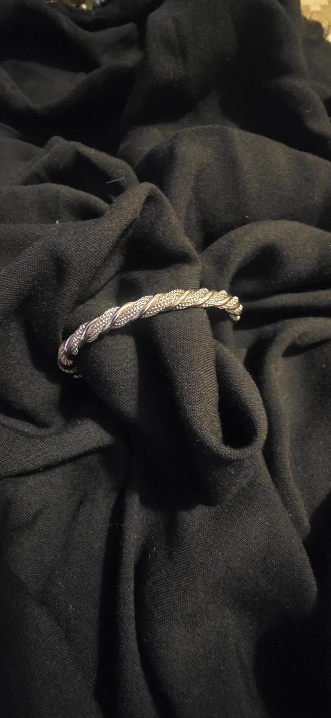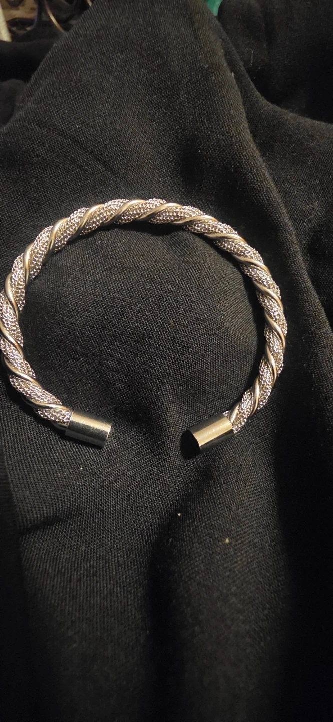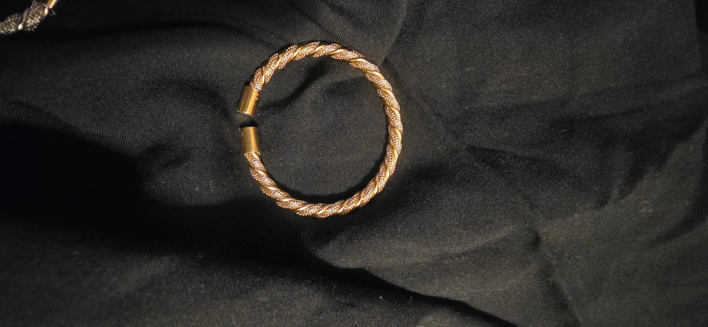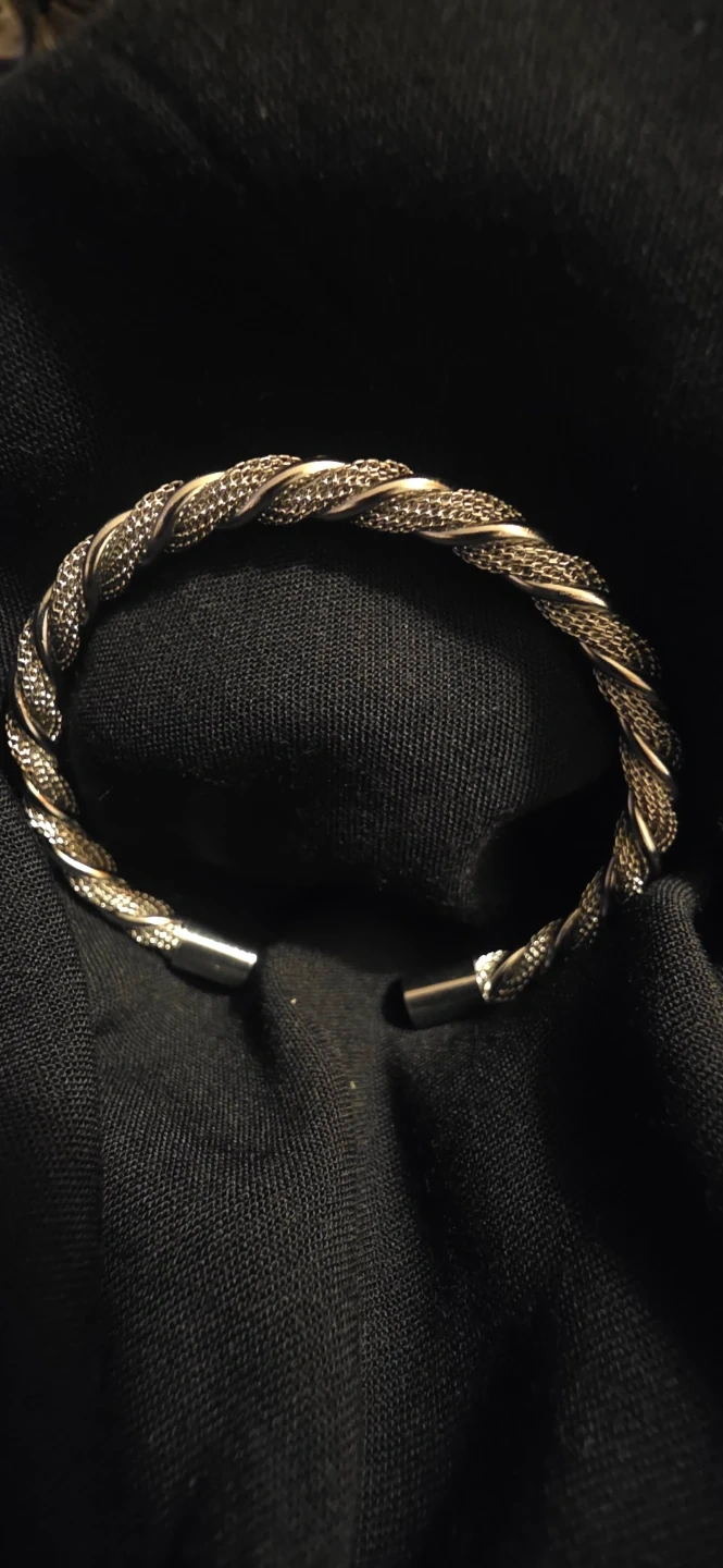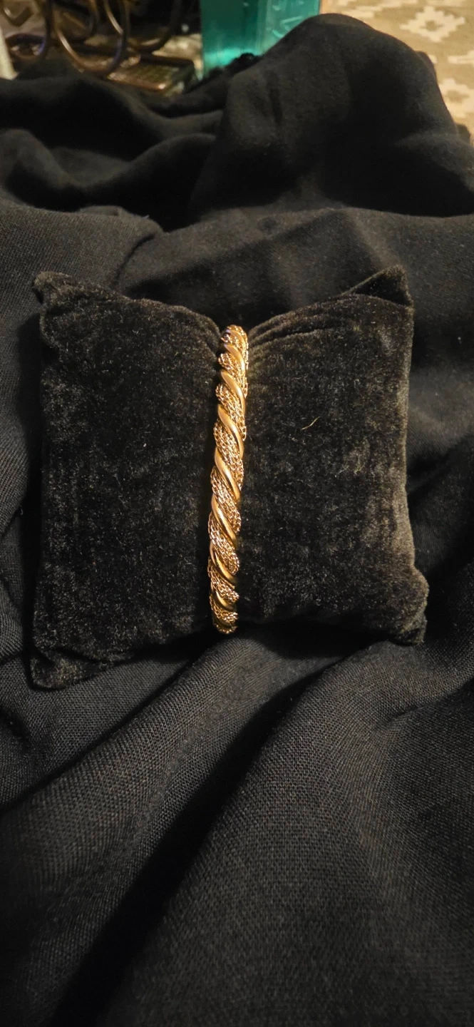 Selling a pair of twisted bangle bracelets. One is gold and the other is silver. They have a unique design. Stainless steel