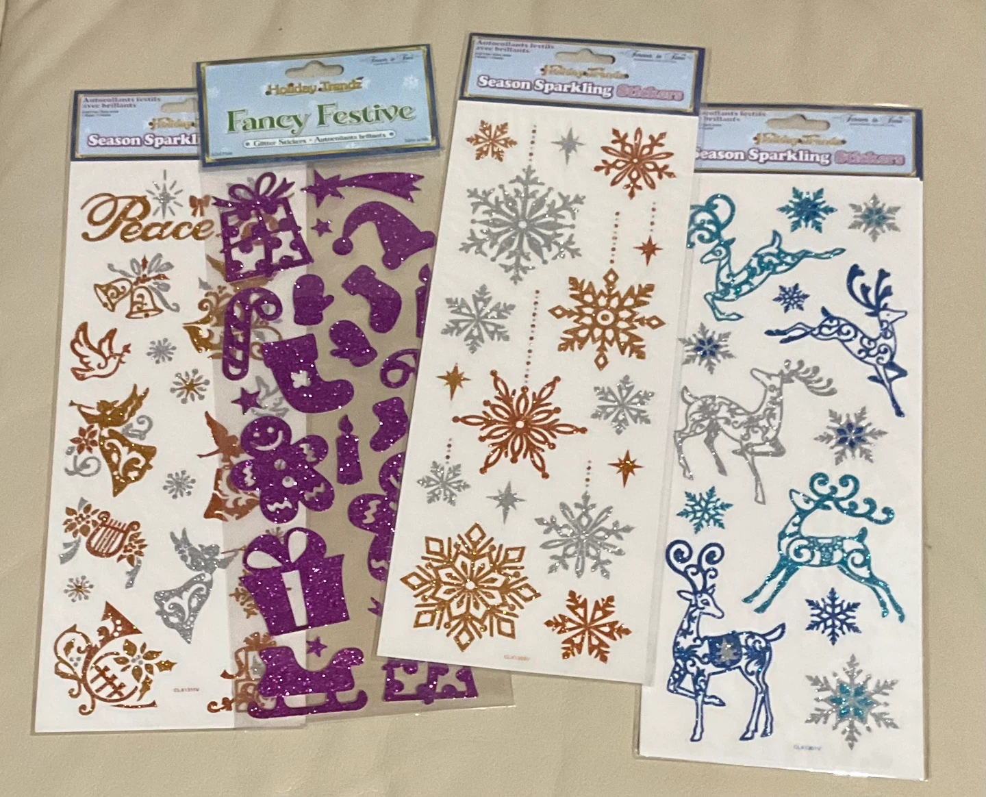 Selling a set of Holiday Trends glitter stickers. They're brand new and ready to add some sparkle to your holiday crafts and decorations! Includes a variety of designs, including snowflakes, reindeer, and festive shapes.
