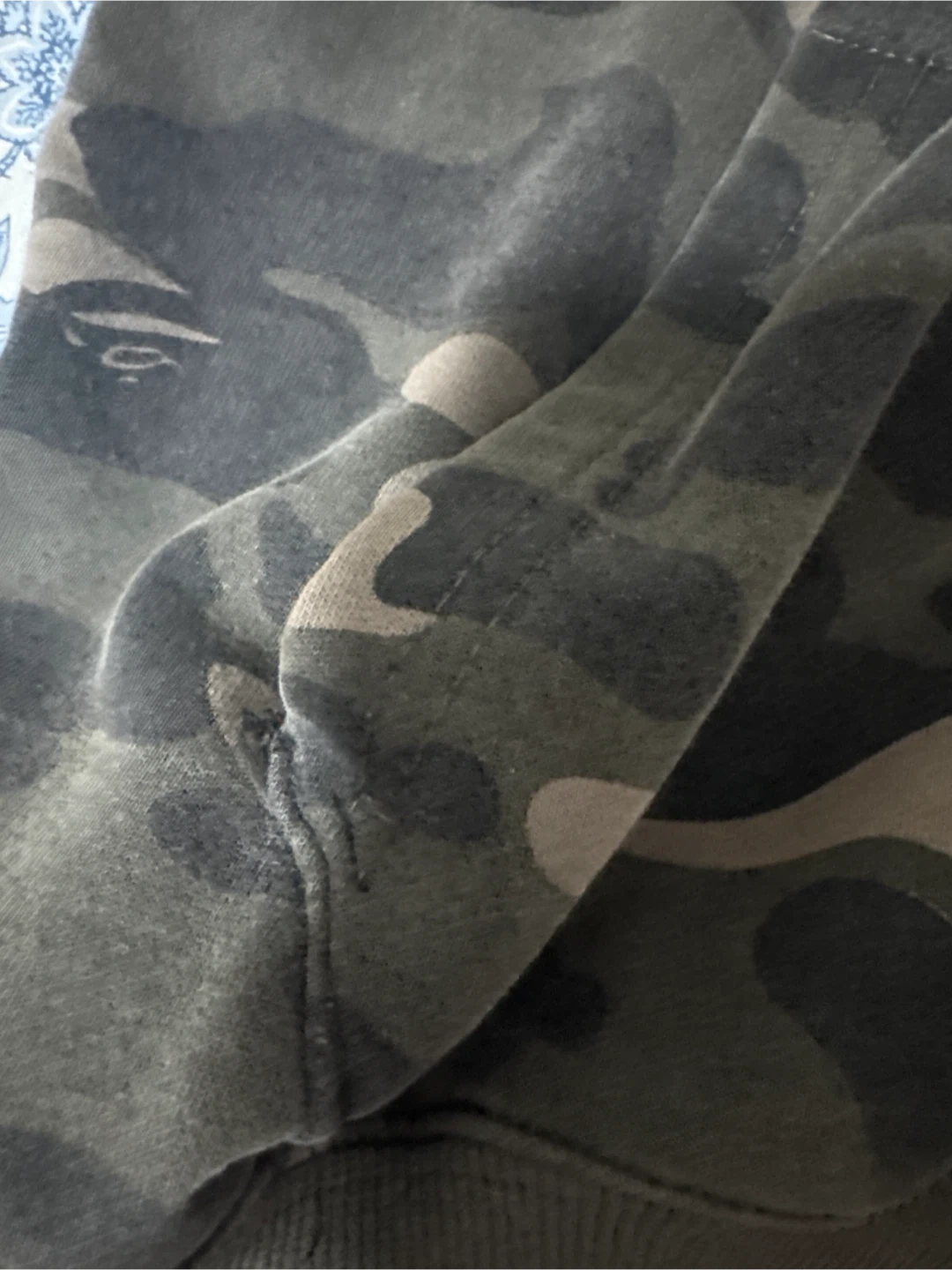 Selling a BAPE (A Bathing Ape) camo shark hoodie in size medium. It's a stylish piece with the iconic shark design on the hood. The hoodie features a full zip and is made from a comfortable material. Perfect for adding a unique touch to your wardrobe!
