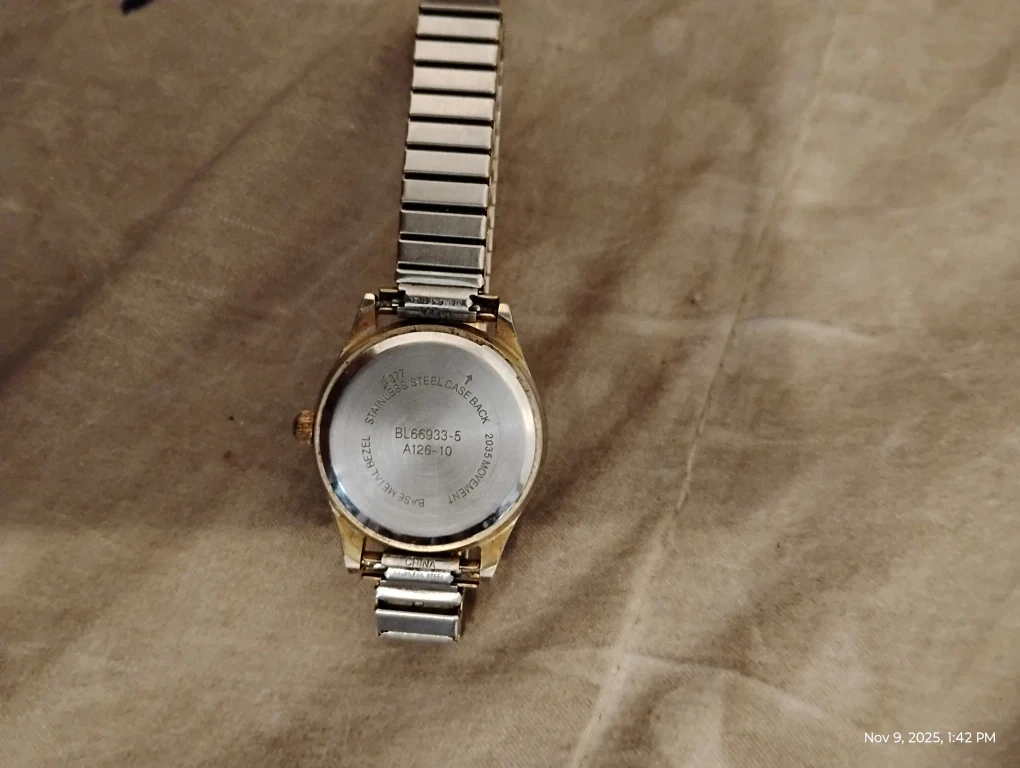 Selling a Bezel Quartz watch. The back of the watch indicates the model number BL66933-5 A126-10. It features a stainless steel case back and a 2035 movement.