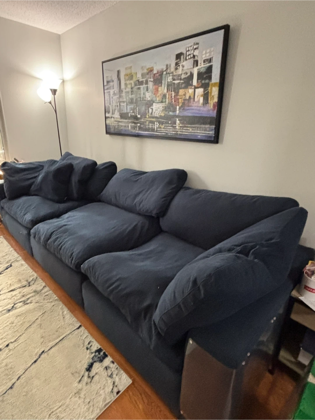 Selling a comfy navy blue modular sectional sofa. It's in great shape and ready to add some serious relaxation to your living room! The modular design means you can arrange it to fit your space perfectly. Perfect for movie nights or lounging around with friends and family