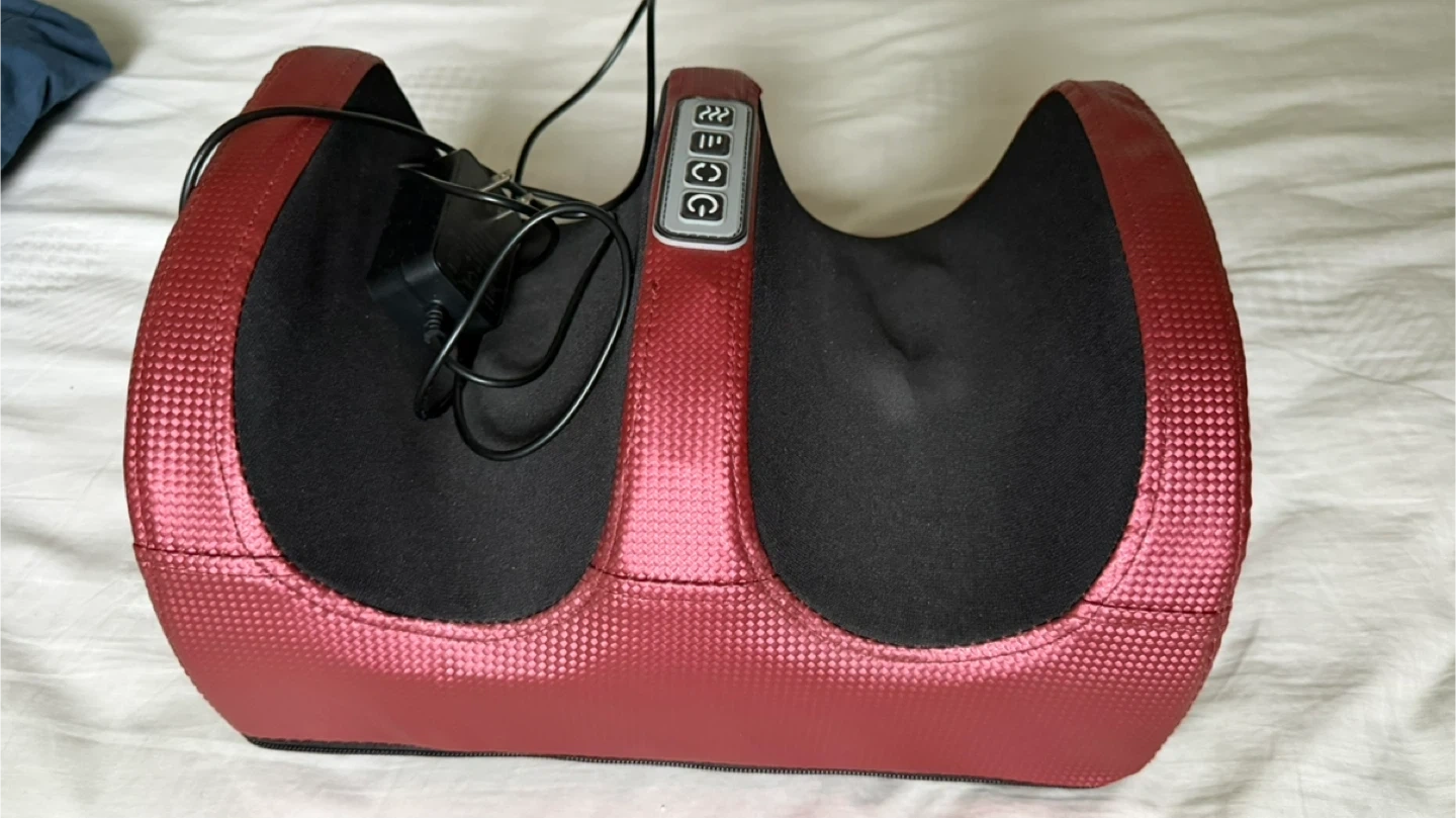Selling a foot & leg massager in red. It comes with the power cord. Perfect for relaxing after a long day on your feet!