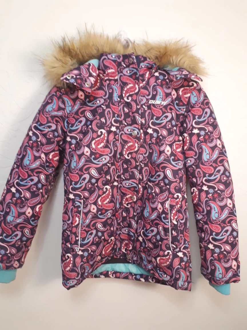 Gusti kids winter jacket in great condition. It's a size 10 and features a fun paisley pattern. Some signs of wear on the sleeves. Please refer to the third picture. Perfect for keeping your little one warm this winter season!