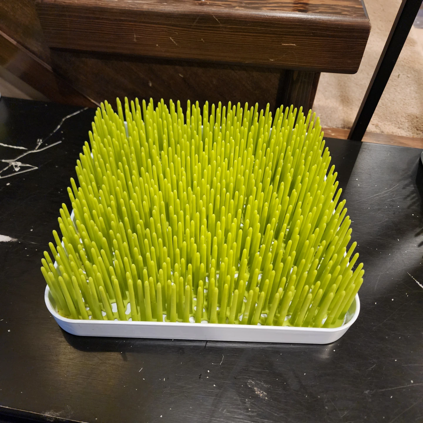 Here's a Boon Grass countertop drying rack! It's great for bottles, pump parts, pacifiers, and other baby accessories. It's in good condition and ready to help keep your little one's items clean and organized