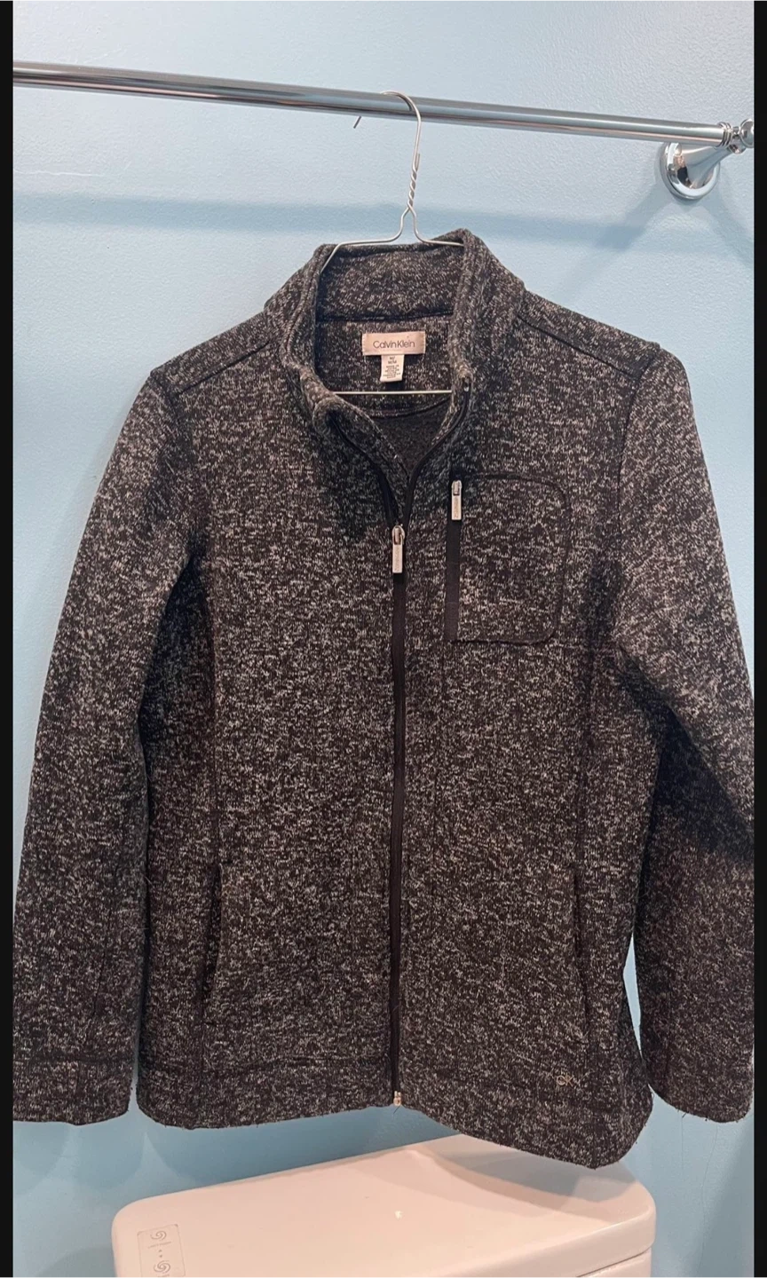 Selling a Calvin Klein full zip jacket in size medium. It's in great condition and perfect for layering! The jacket features a full zipper and a comfortable fit. It's a stylish and versatile piece to add to your wardrobe!