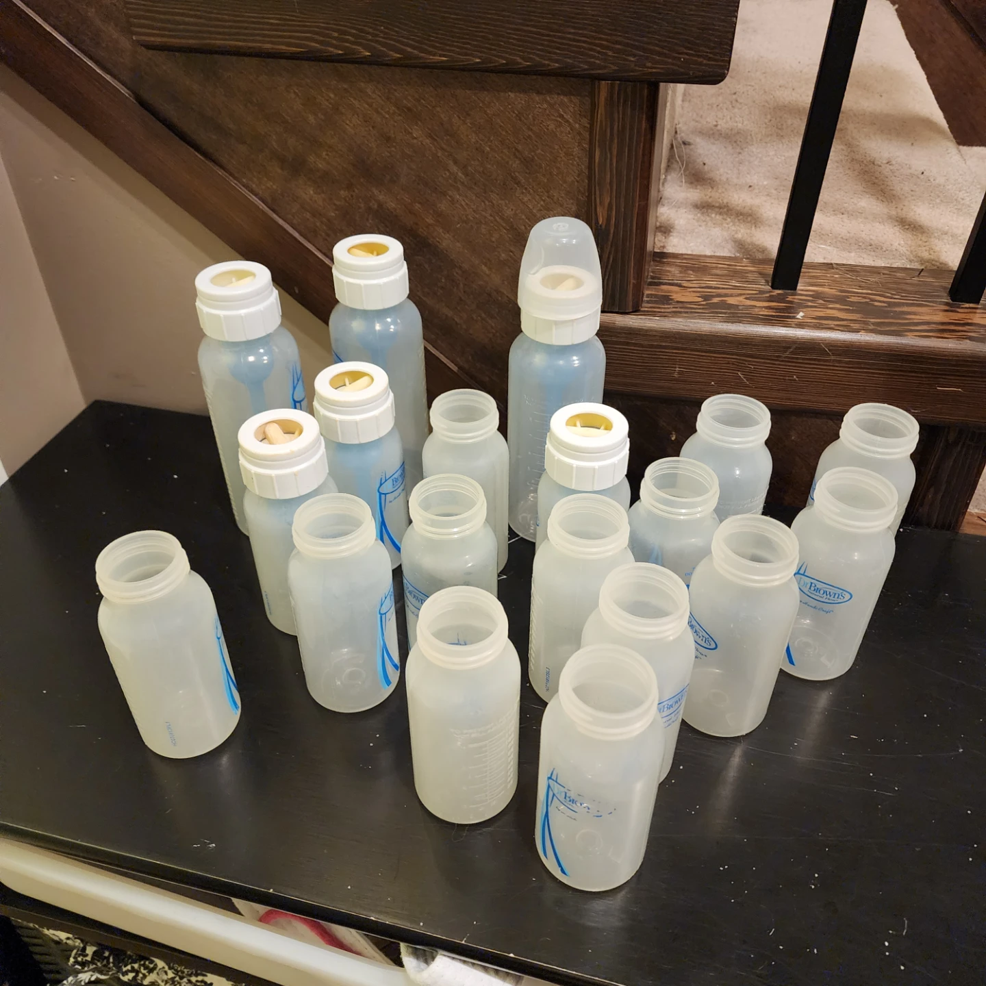 Selling a lot of 17 Dr. Brown's baby bottles. These bottles are great for reducing colic and gas. They are in good used condition and ready for a new baby!