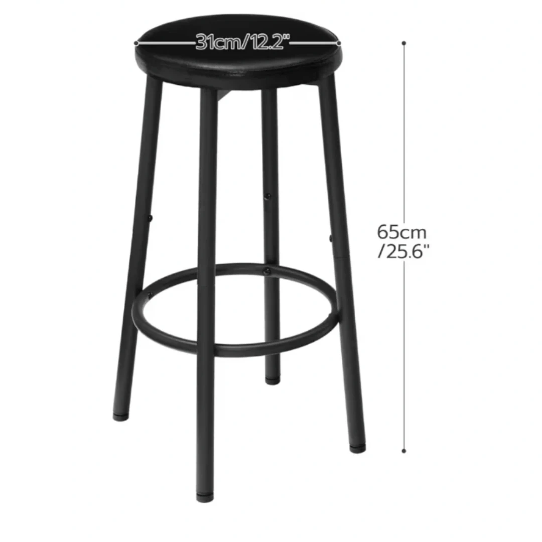 Selling a bar stools in black colors. Snug and Easy to Clean The 4.5 cm thick sponge cushion has excellent resilience and soft touch and the PU cover. The stool has a comfortable footrest and is easy to assemble. Dimensions are approximately 25 inches tall with a 12 inch diameter seat.
