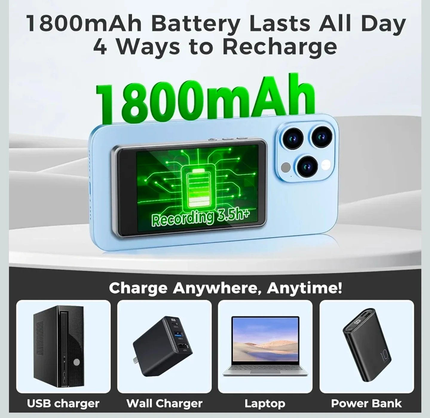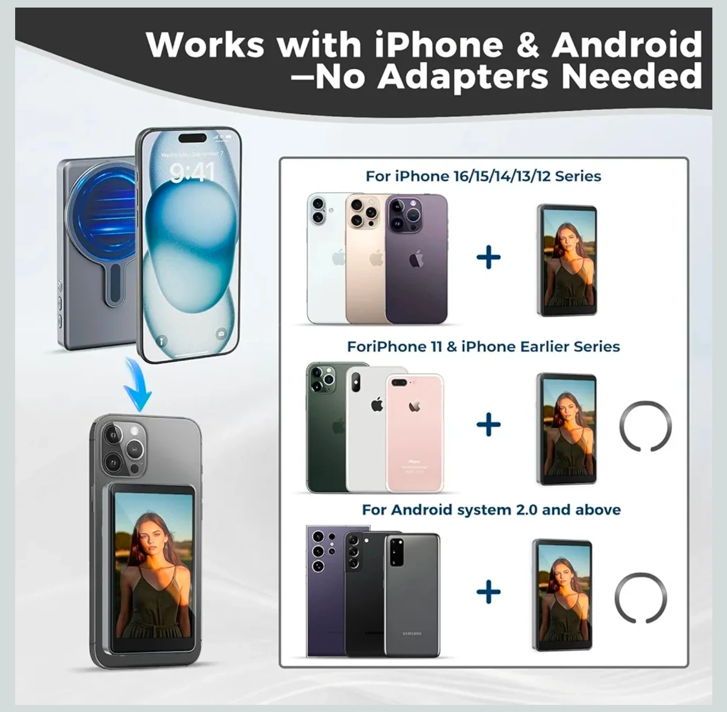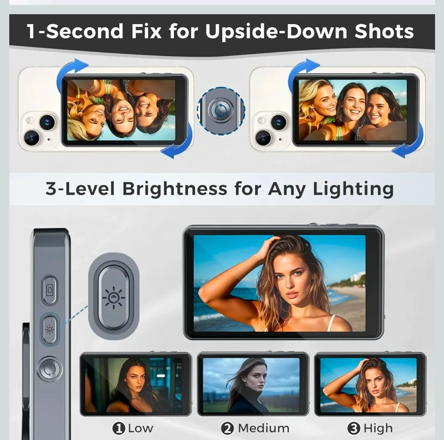 Wireless Selfie Monitor Screen for iPhone & Android,1800mAh with Bluetooth Remote, 3-Level Brightness & Wide Screen Mode, Back Camera Monitor iPhone Selfie Vlog No Delay Live Stream for TikTok