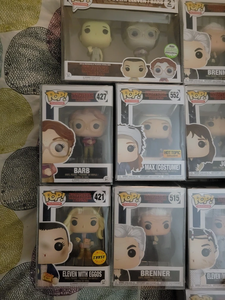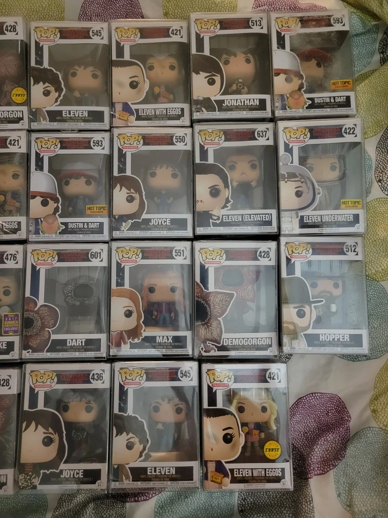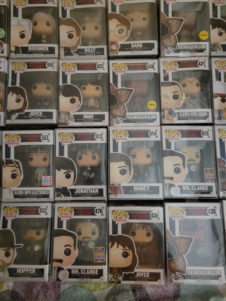 Selling a collection of Funko POP! figures from Stranger Things. All figures are in their original boxes and in great condition. Perfect for any Stranger Things fan or Funko collector!