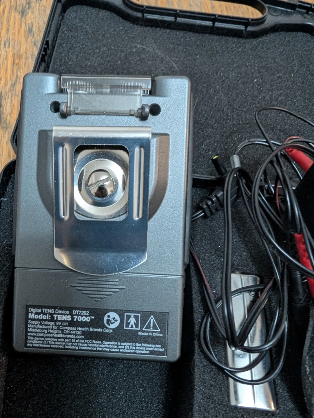 Selling a TENS 7000 Digital TENS Device, model DT7202. It comes with the case and all the accessories pictured! This is a Compass Health Brands Corp product.