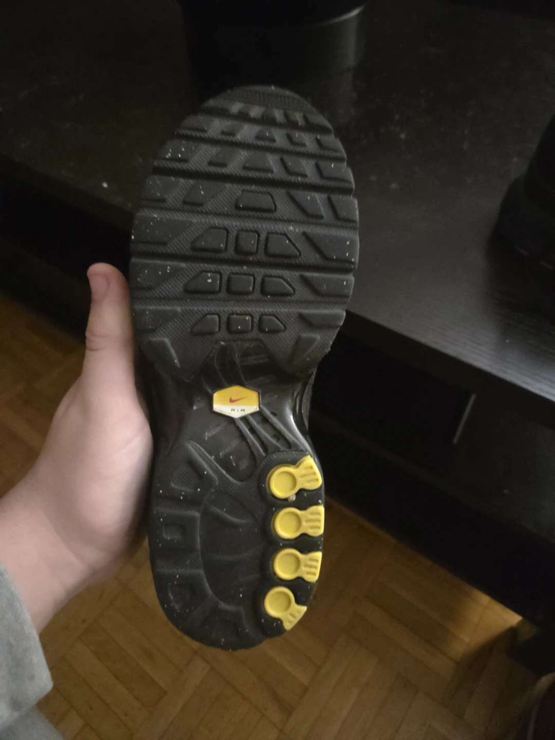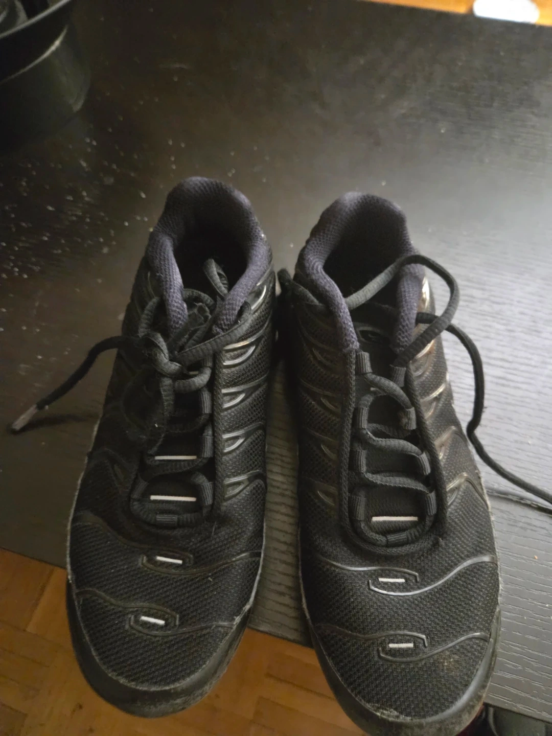 Selling a pair of Nike Air Max Plus TN sneakers in black. They're in good condition and ready for a new owner! The iconic design and comfortable fit make them a great choice for everyday wear.
