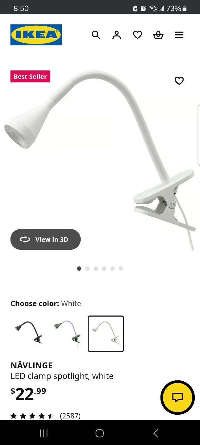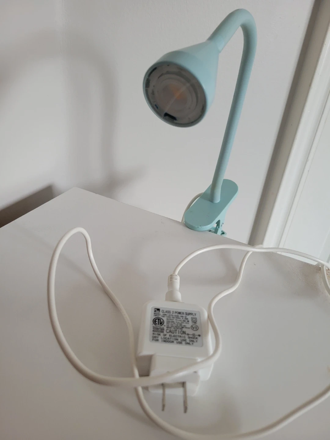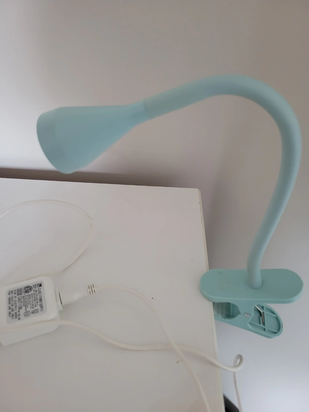 Selling an IKEA Nävlinge LED claw spotlight in a lovely blue colour! It's perfect for a desk or bedside table. Clips right on, so it's super convenient. Originally bought for $22.99