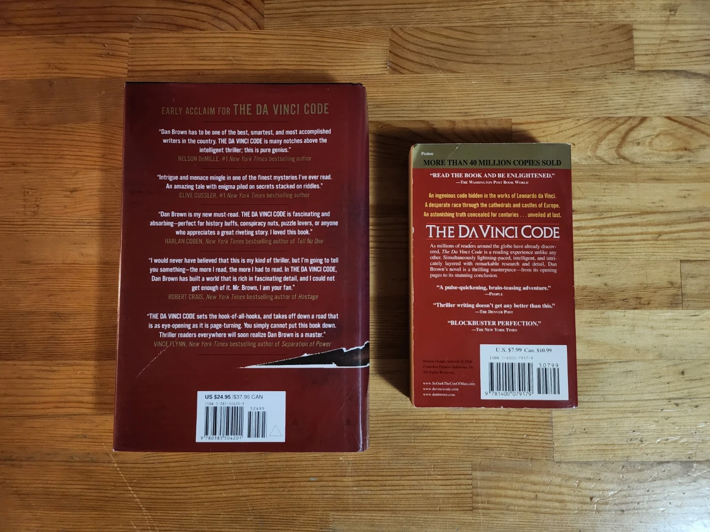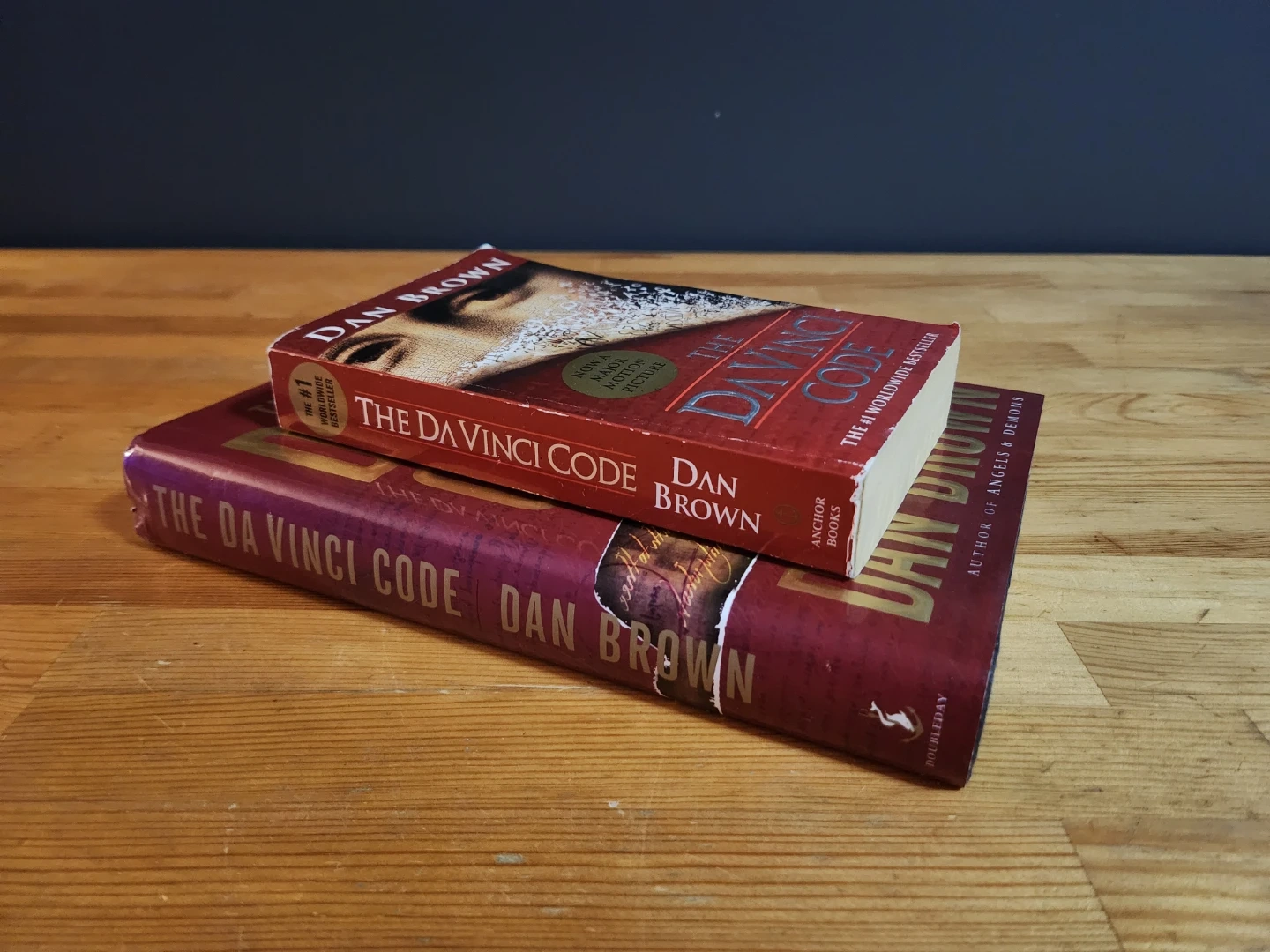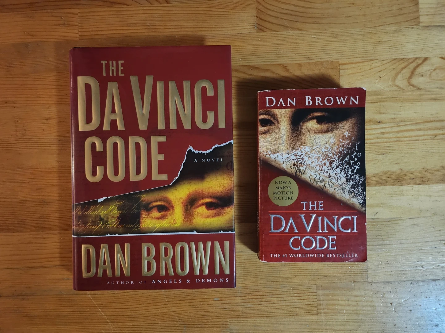 Two copies of The Da Vinci Code by Dan Brown! One is a larger hardcover edition, and the other is a smaller paperback version. Both are in great shape and ready for a new reader.