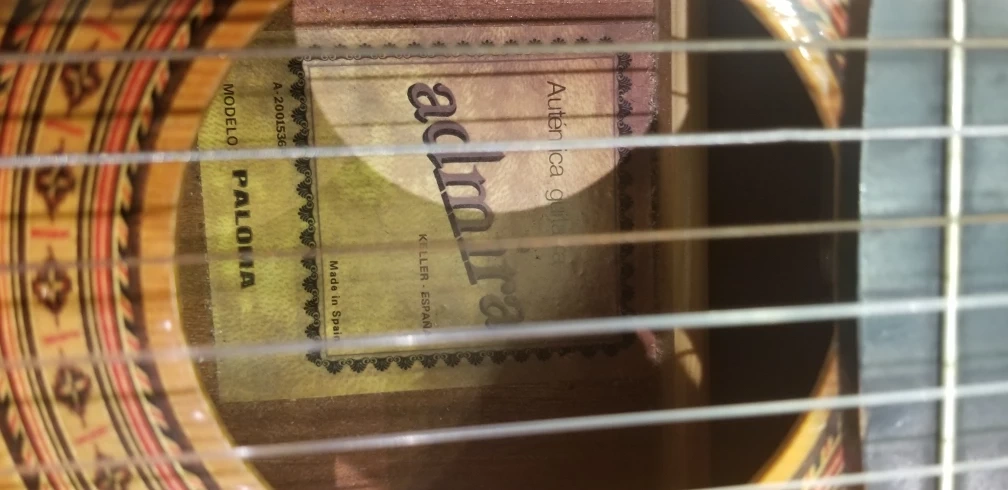 This is an Alhambra Paloma classical guitar, crafted in Spain, that offers a rich, resonant sound and comfortable playability. This instrument has some signs of use, as shown in the pictures.
