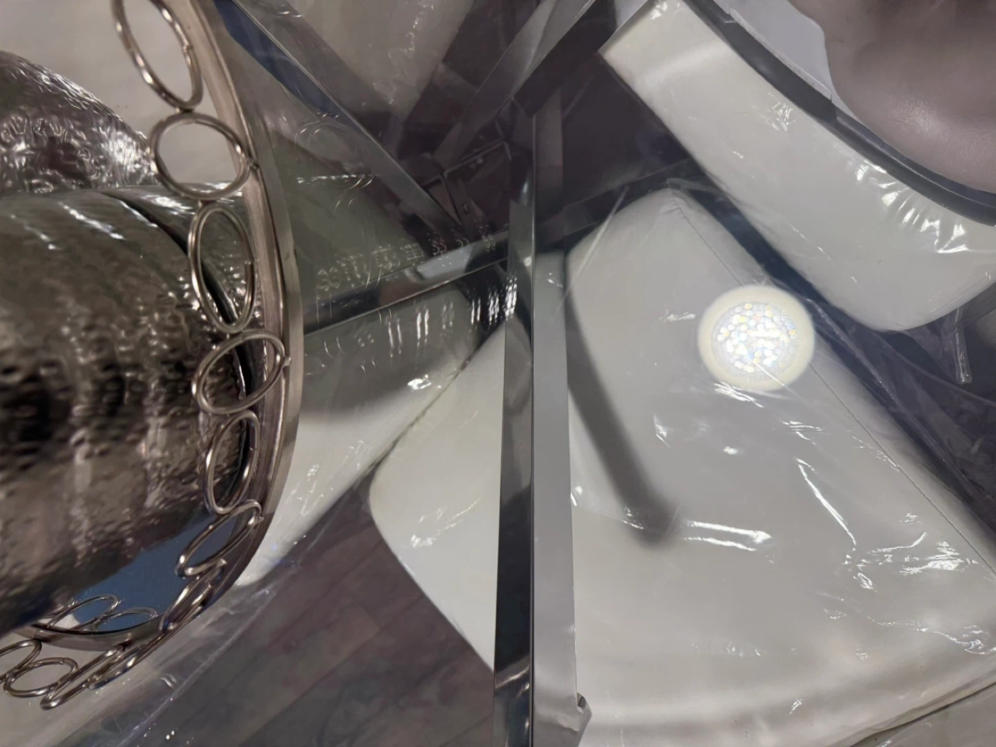 As well as on one of the chairs you can see a few scratches on the back from my cat I had the plastic covers on them since I got them otherwise in excellent condition
